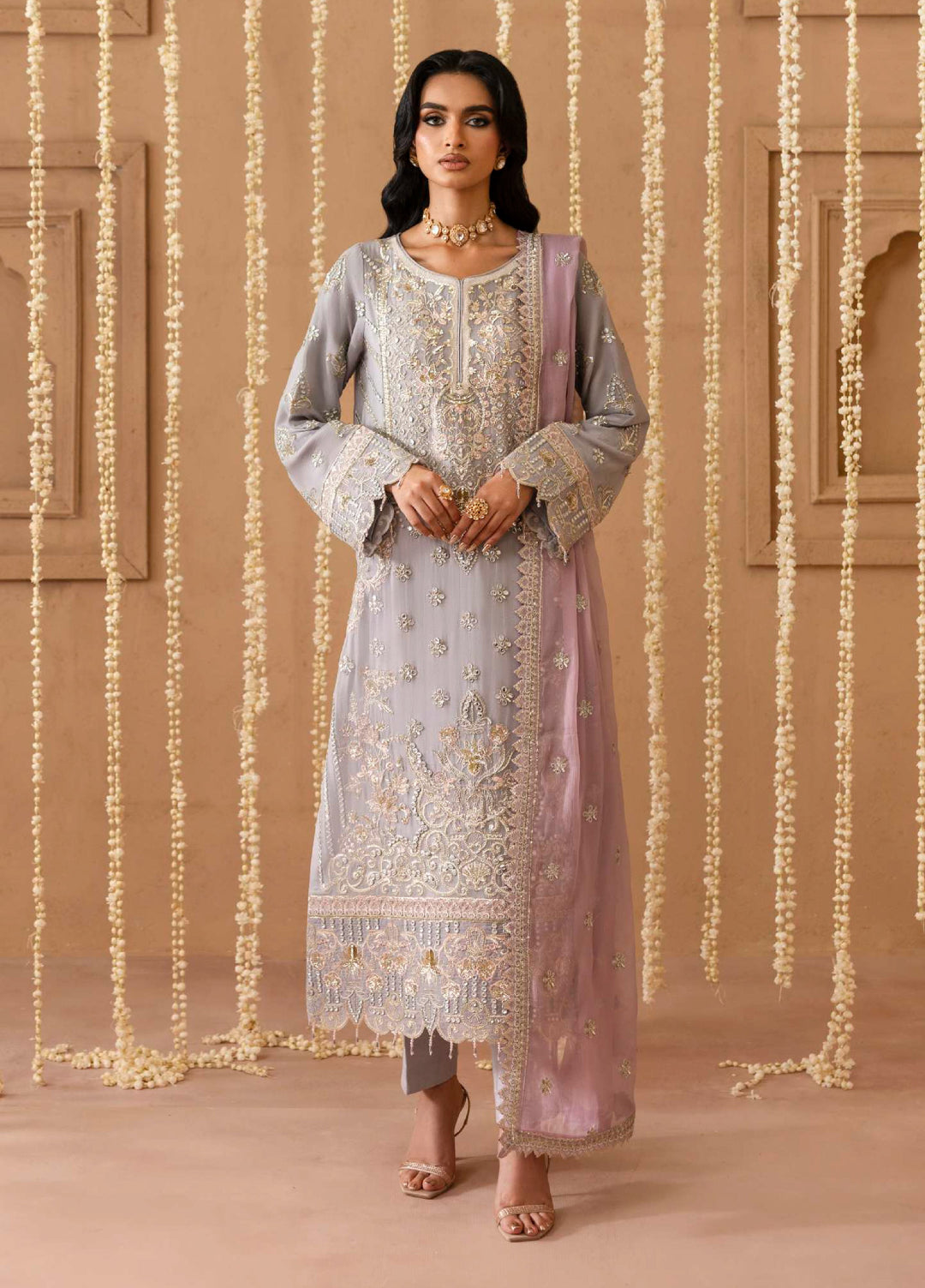 The Empress by Emaan Adeel Embroidered Chiffon Suits Unstitched 3 Piece EA25TE D-01 Avoria - Formals Collection