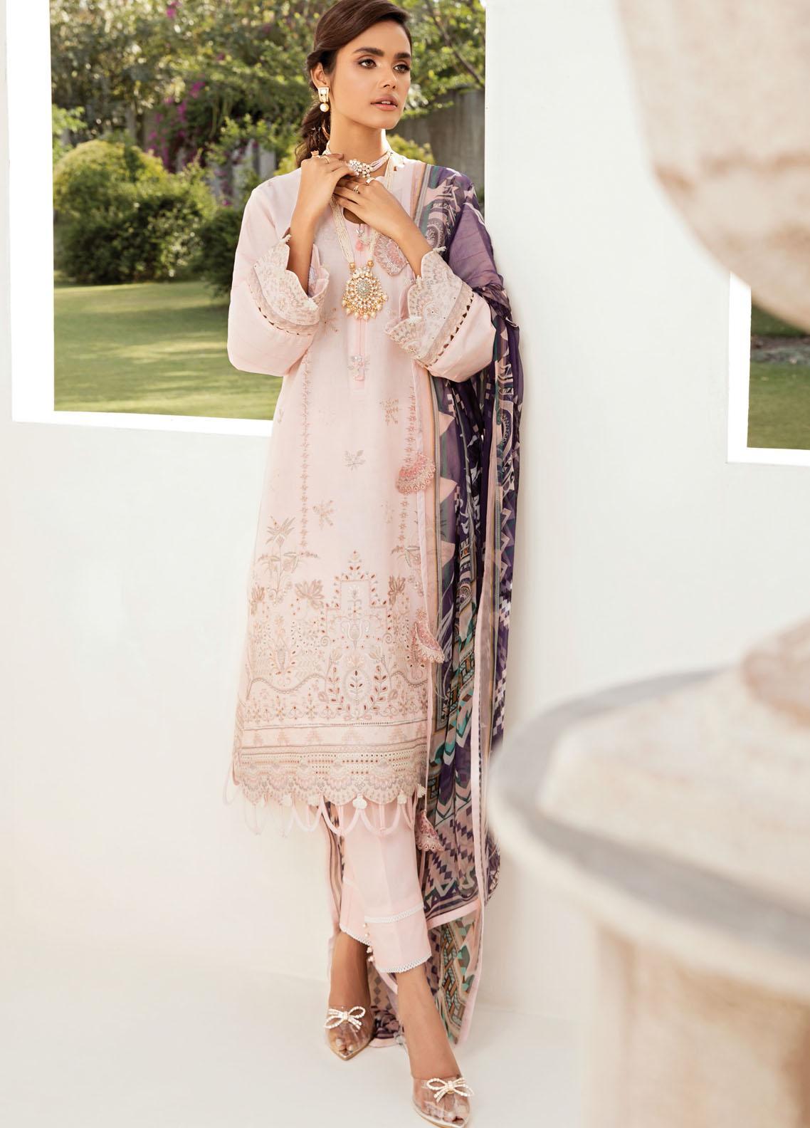 Farasha Embroidered Lawn Suits Unstitched 3 Piece FSH21-L2 08 Pink Flora - Festive Collection
