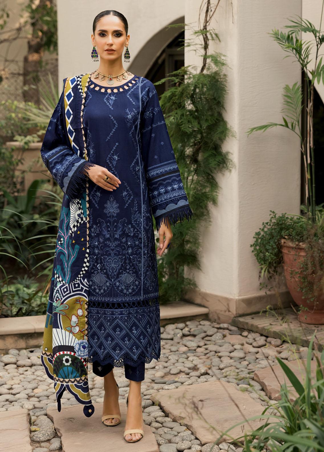 Farasha Embroidered Khaddar Suits Unstitched 3 Piece FSH21K 03 Cobalt Aroma - Winter Collection