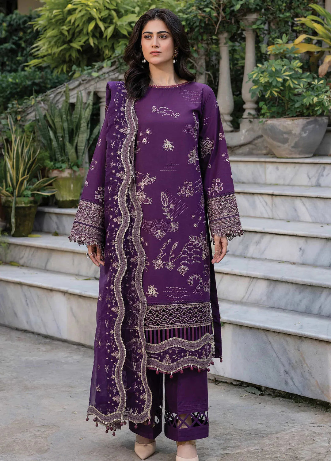 Bahar by Farasha Embroidered Lawn Suits Unstitched 3 Piece FSH25B D-01 Regal Plum - Summer Collection