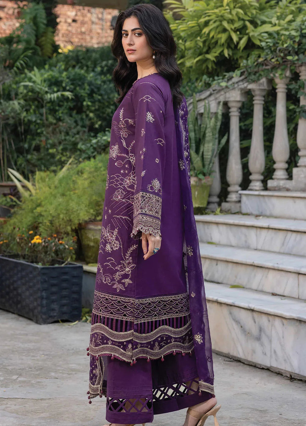 Seraya By Farasha Embroidered Lawn Suit Unstitched 3 Piece FSH24S D-08 Periwinkle - Summer Collection
