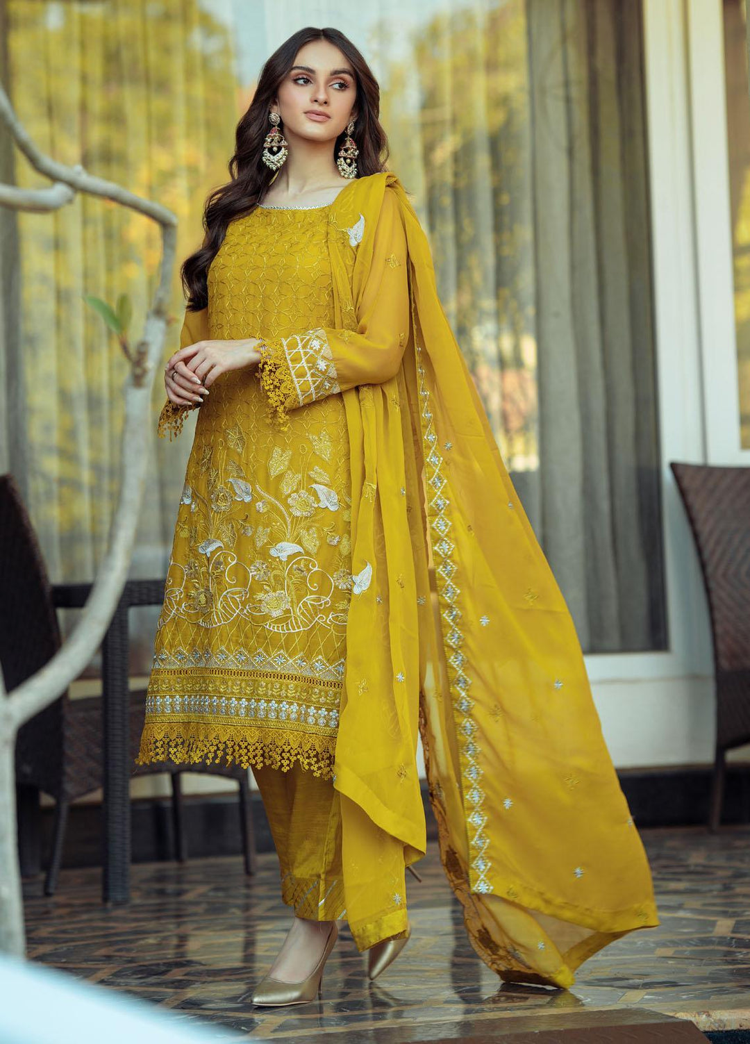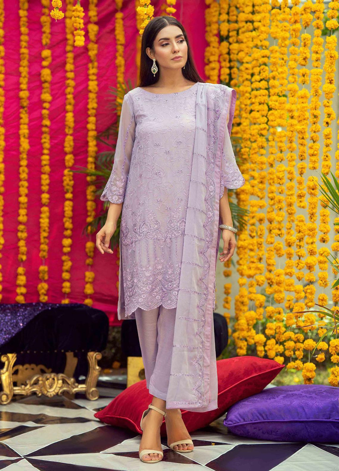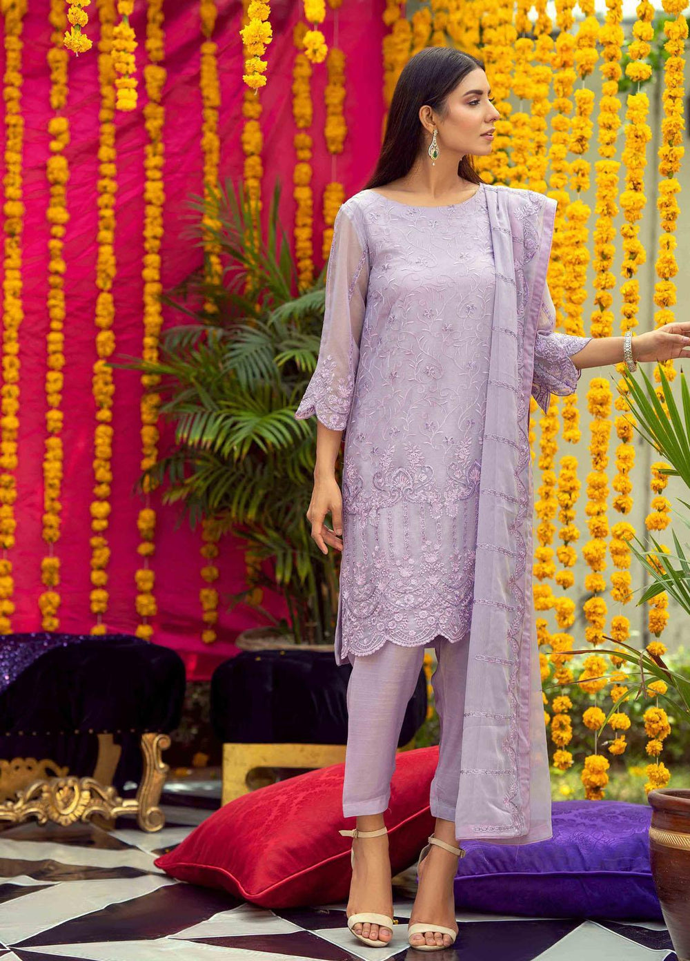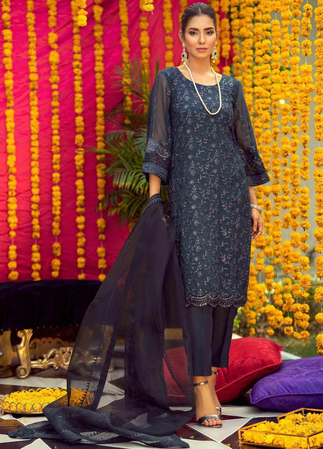 The premium unstitched chiffon collection by Fascino. This collection encompasses 12 alluring designs. Each of the outfits comes with a unique style and intricacies. The name flora in itself tells a floral story of art and design in the apparel. The dresses are luxury, and can be carried to special events, weddings, parties or a dinner date with your husband.