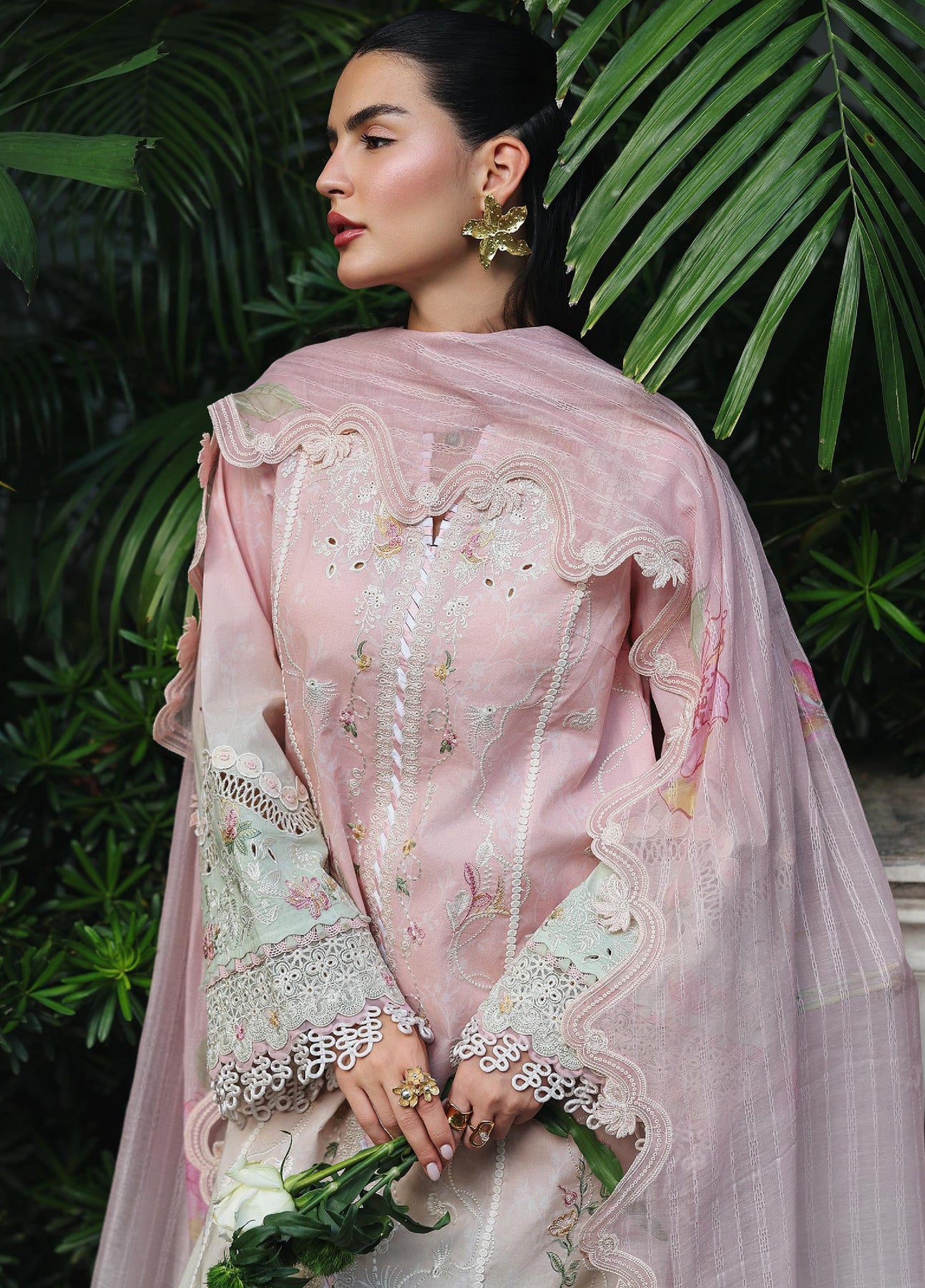 - Chikankari Embroidered Border (Sleeves)