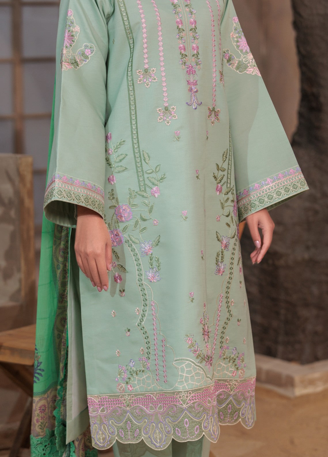 The Rangrez 3-piece embroidered lawn outfit features a beautifully embroidered lawn shirt, a soft chiffon dupatta, and coordinated dyed cotton trouser crafted for refreshing summer elegance with a pastel luxury appeal available in stitched and unstitched.