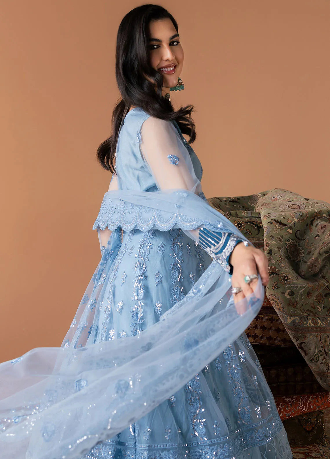 Esra by Fiona Embroidered Pret Net 4 Piece Suit Azure