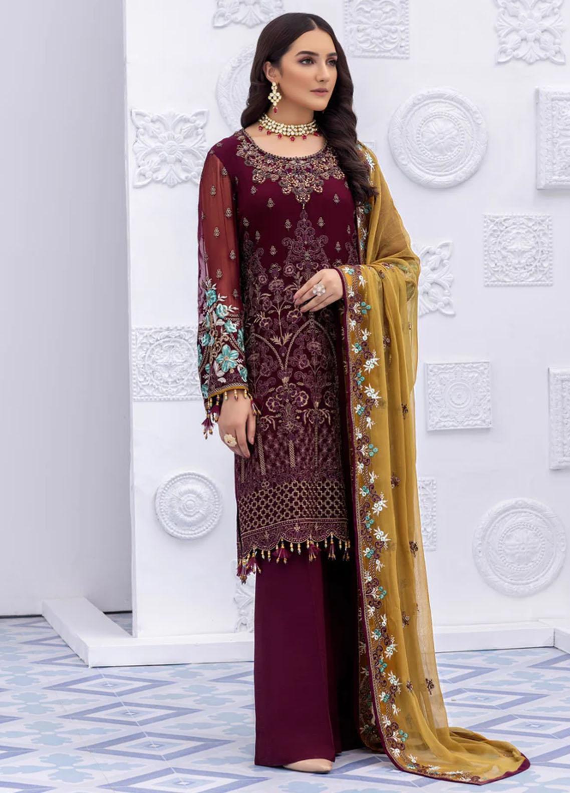 Flossie Embroidered Chiffon Suits Unstitched 3 Piece ANDORRA - Luxury Collection