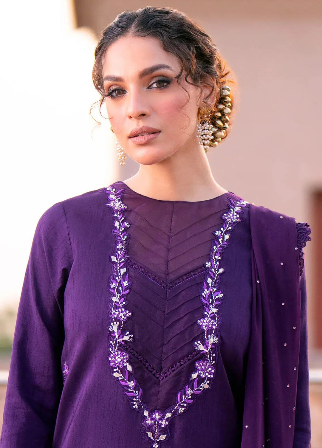 Fozia Khalid Pret Embroidered Raw Silk 3 Piece Suit Lilac Dreamscape