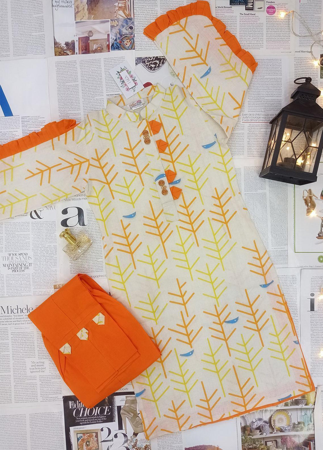 Hiba Clothing Cotton Girls 2 Piece Suit - HPW-004 BRANCHES