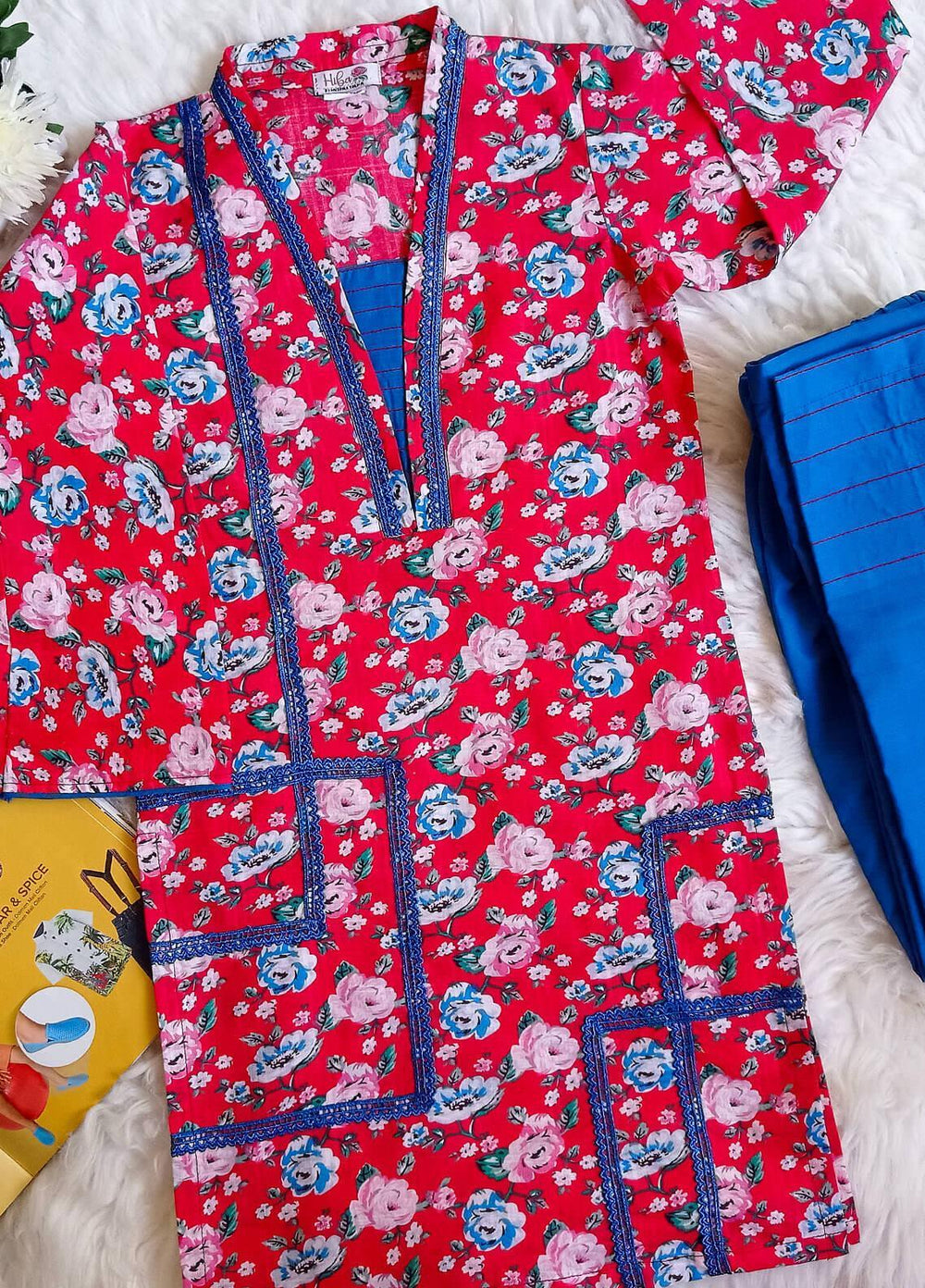 Hiba Clothing Lawn Casual 2 Piece Suit for Girls - HBT-003 Red Floral