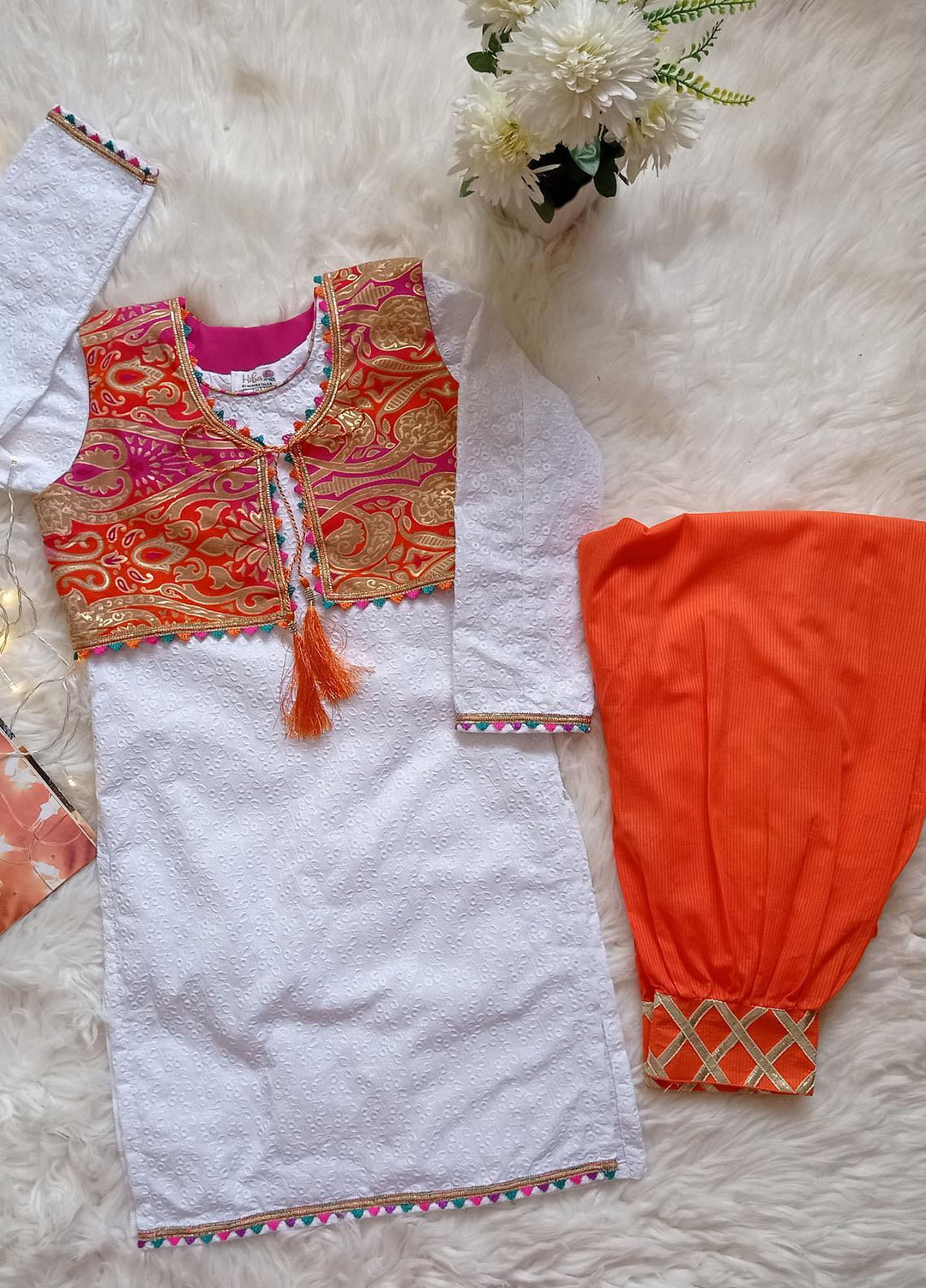 Hiba Clothing Chikankari Fancy Girls 2 Piece Suit - HEC-006 White Koti