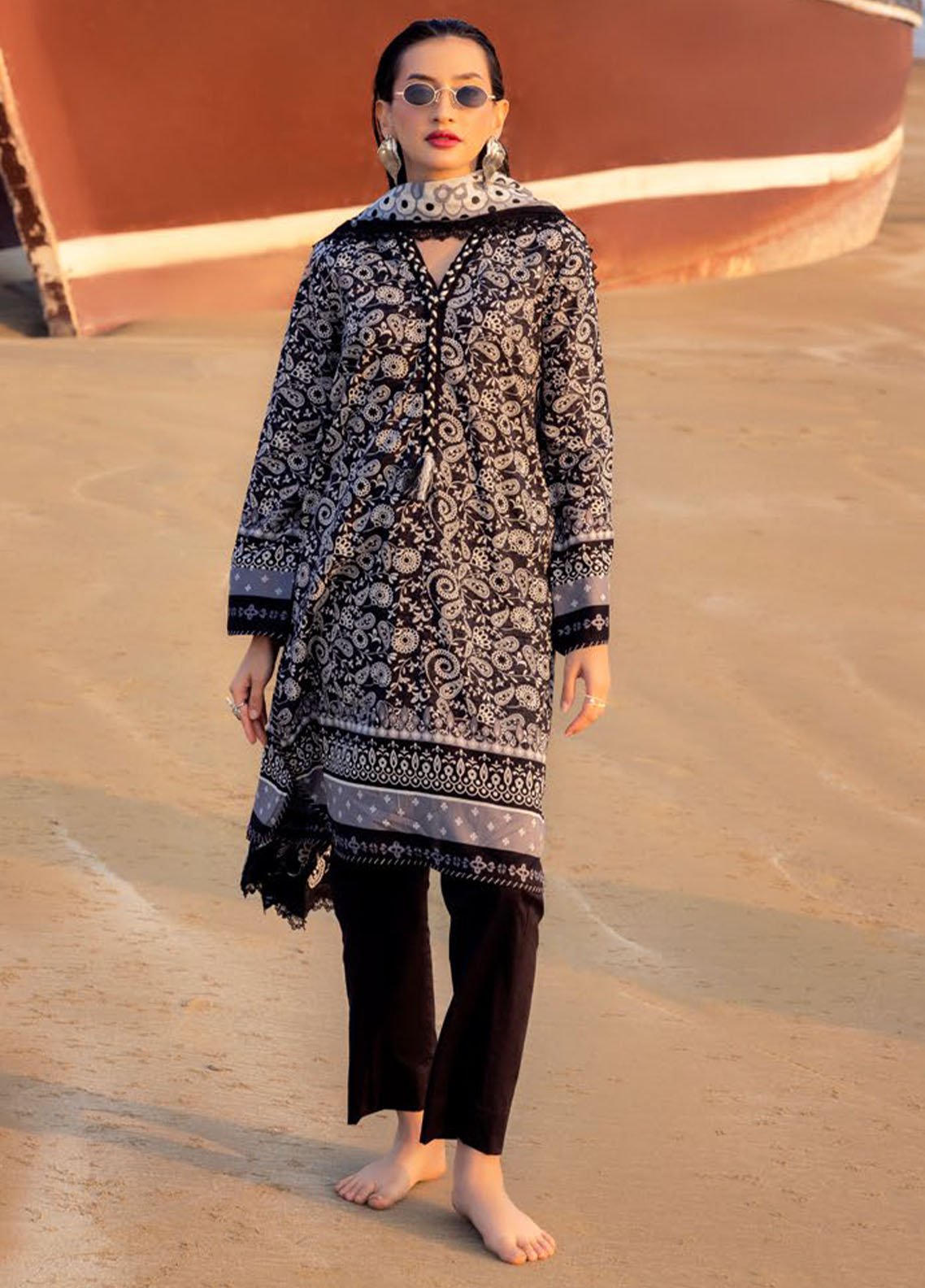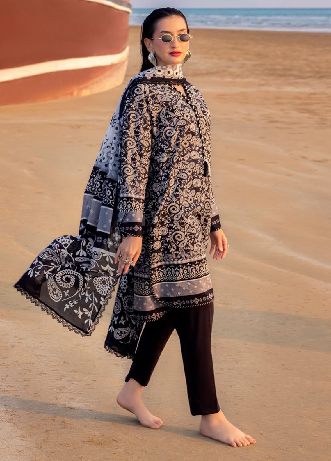 3 Piece Printed Unstitched Suits from Noir Black And White by Gul Ahmed Unstitched Summer Collection 2025