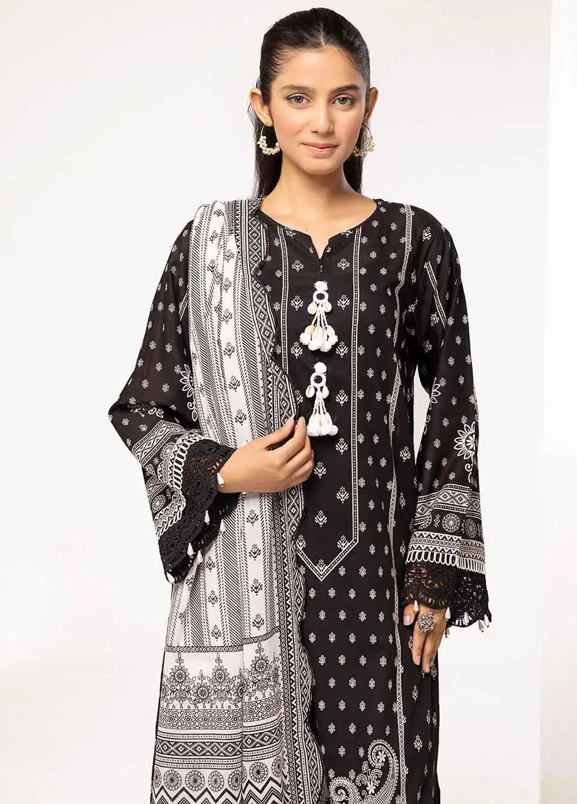 Slate By Gul Ahmed Printed Lawn Suit Unstitched 3 Piece GA24SBW B-42019 - Summer Collection