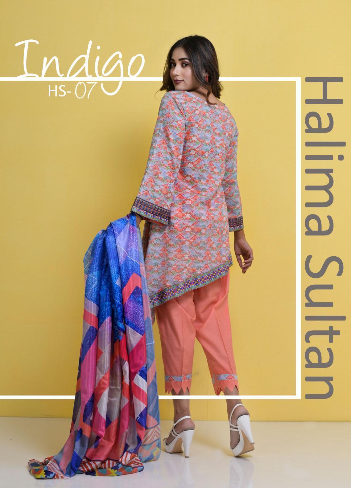 Halima Sultan Embroidered Lawn Suits Unstitched 3 Piece HS21-L3 07 Indigo - Summer Collection
