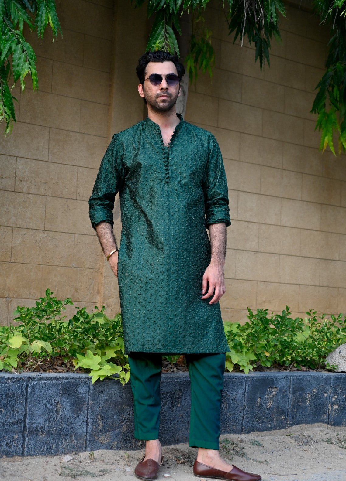 Hk Fashion Mens Ready To Wear 1 Piece Embroidered Emerald Green Embroidered Kurta Trouser - Wedding Collection