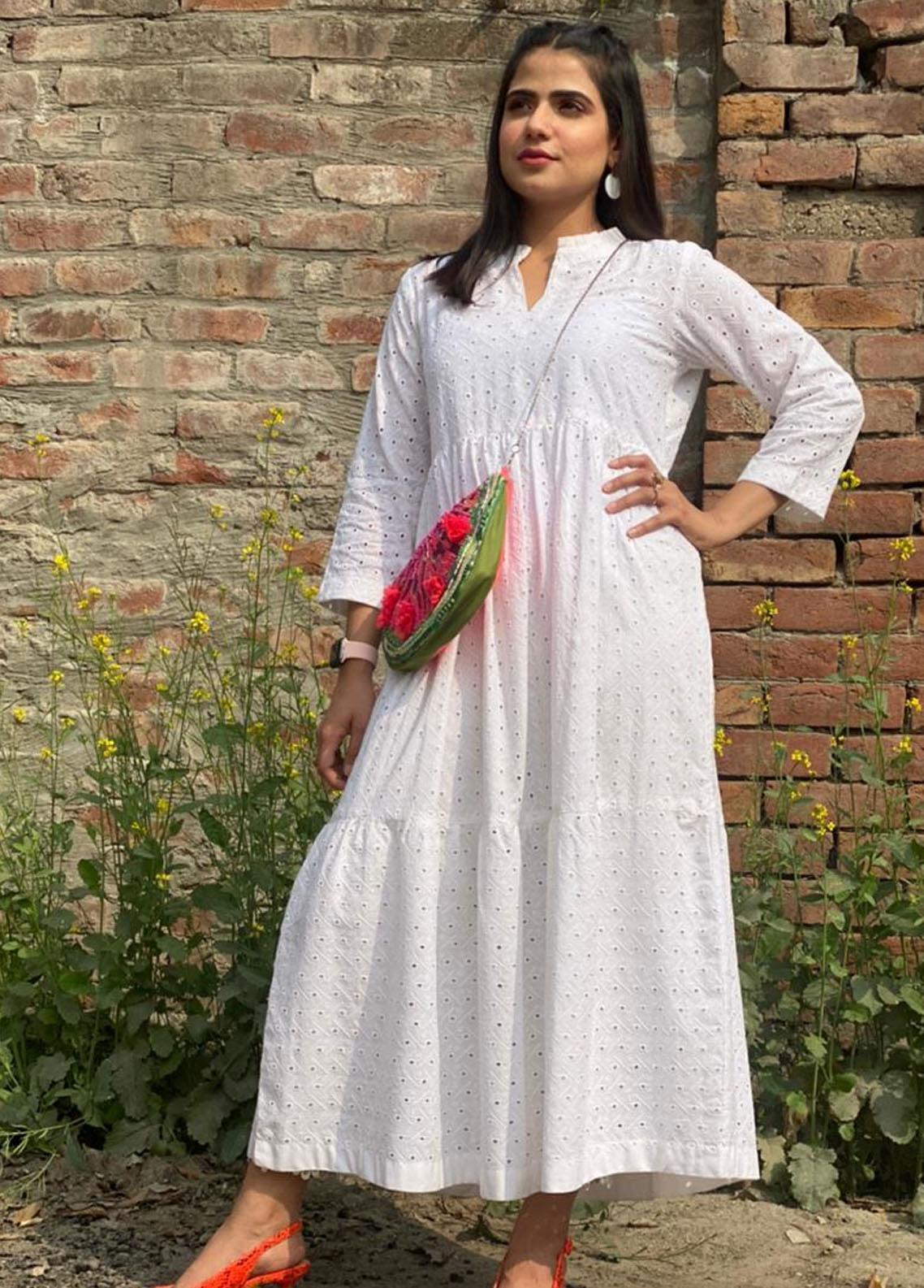 This White Basic Chicken Gypsy Dress Is Chic Yet Comfortable At The Same Time To Wear.