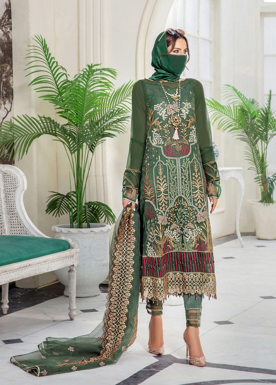 Hazel By Humdum Embroidered Organza Suits Unstitched 4 Piece HD22HO DE-06 - Luxury Collection