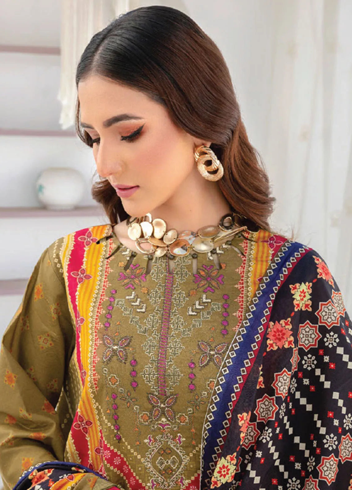 • Embroidered Neckline Printed Shirt 3 Meter