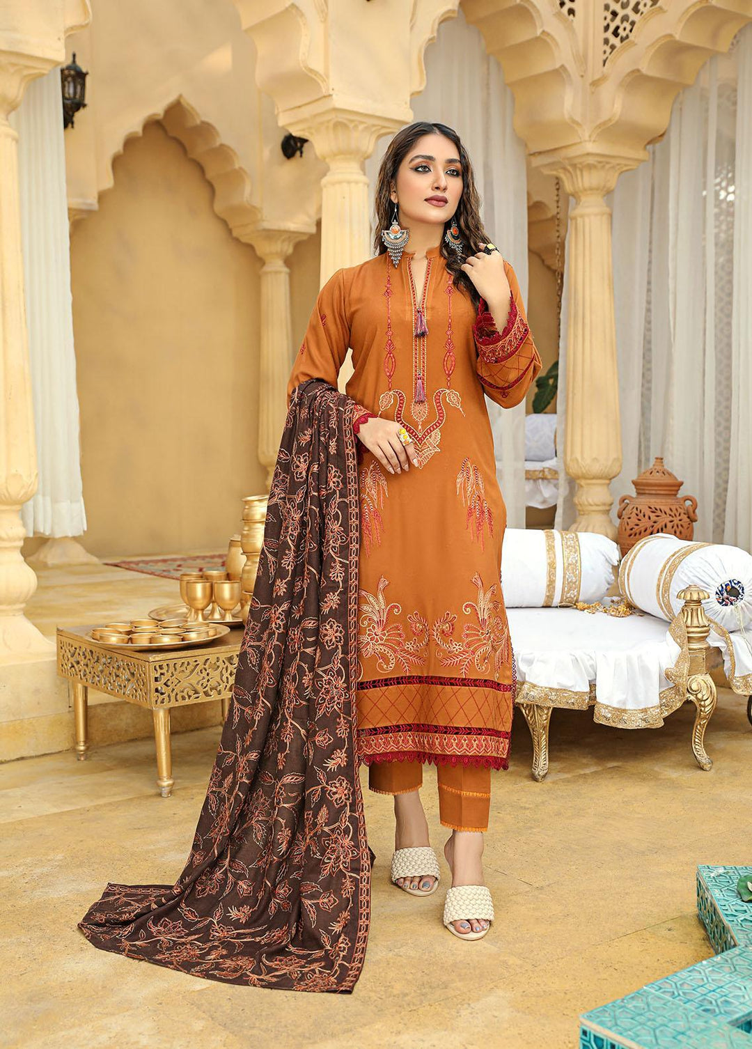 Dastaan By Humdum Embroidered Viscose Suits Unstitched 3 Piece HD22D 10 - Winter Collection