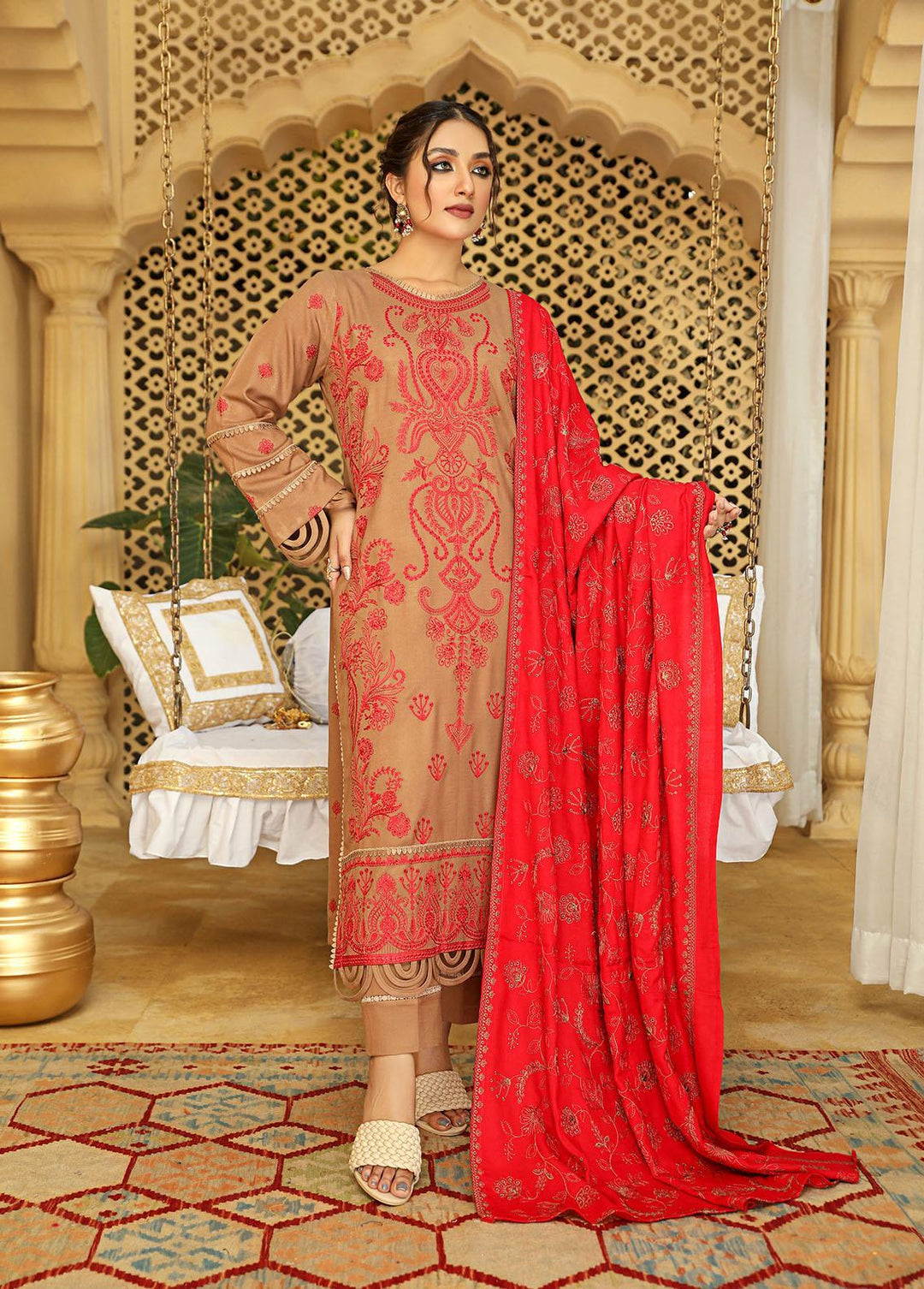 Carvaan By Humdum Embroidered Woolen Suits Unstitched 3 Piece HD22C 06 - Winter Collection