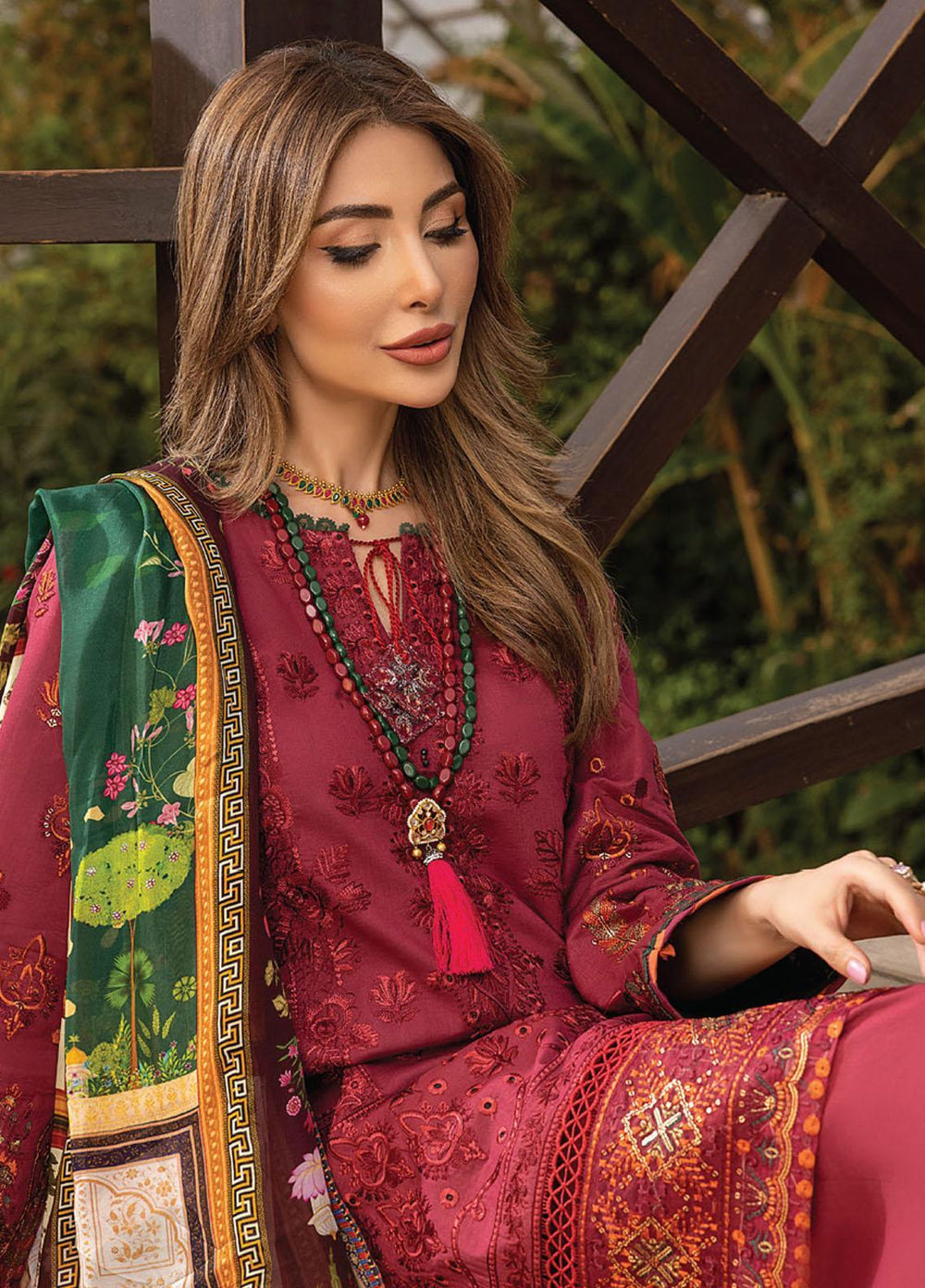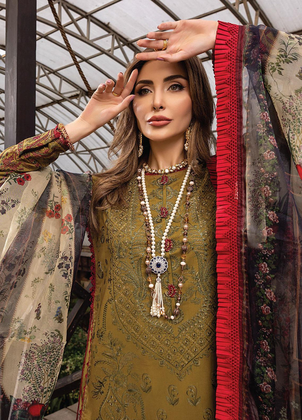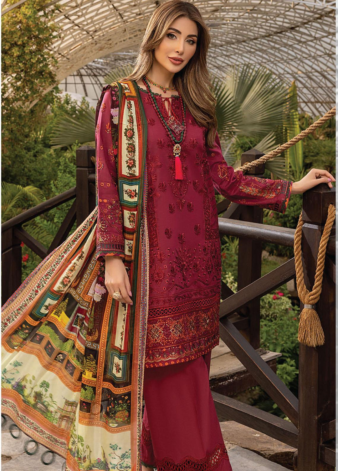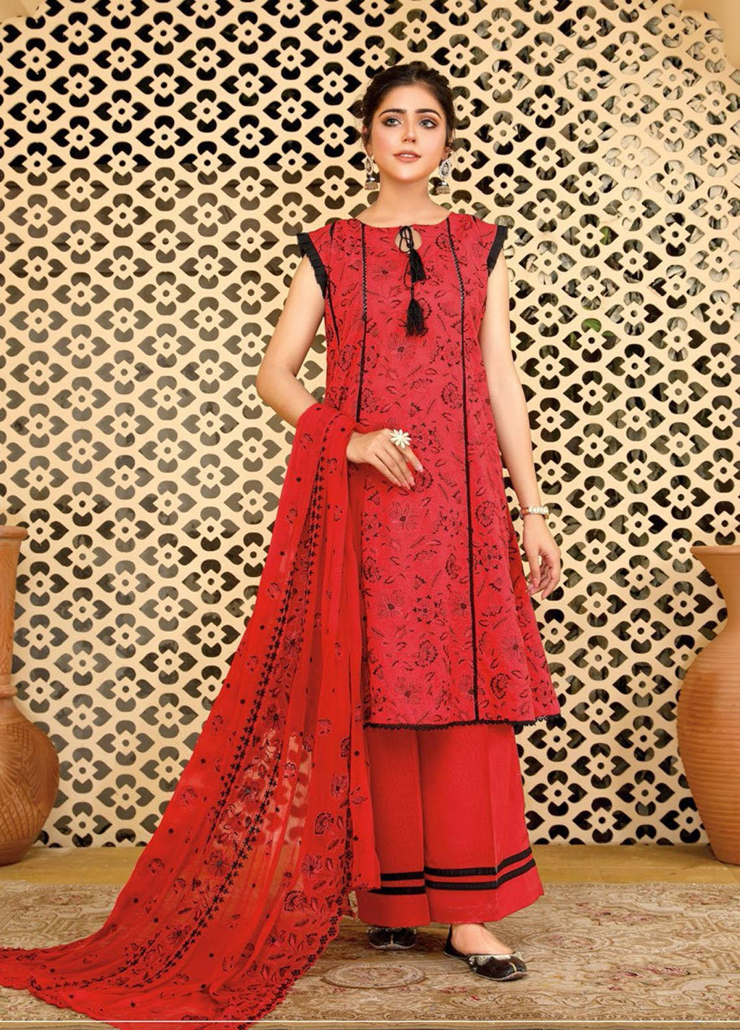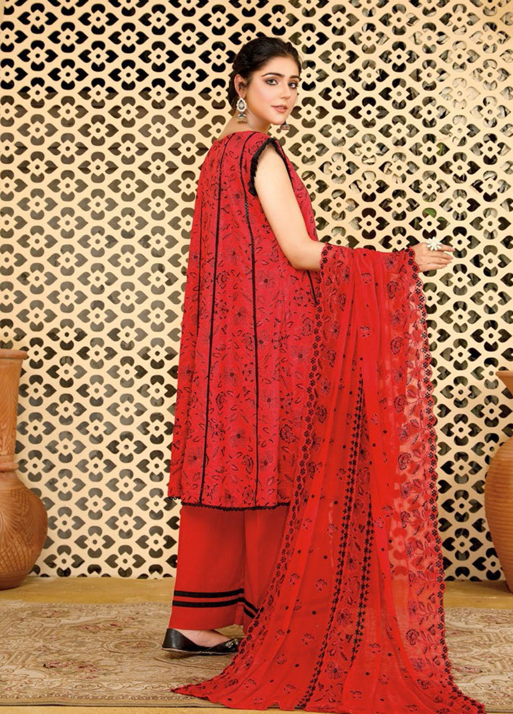 Arzoo by Humdum Embroidered Lawn Suits Unstitched 3 Piece HD22AZ D-01 Red Rose Mist - Summer Collection