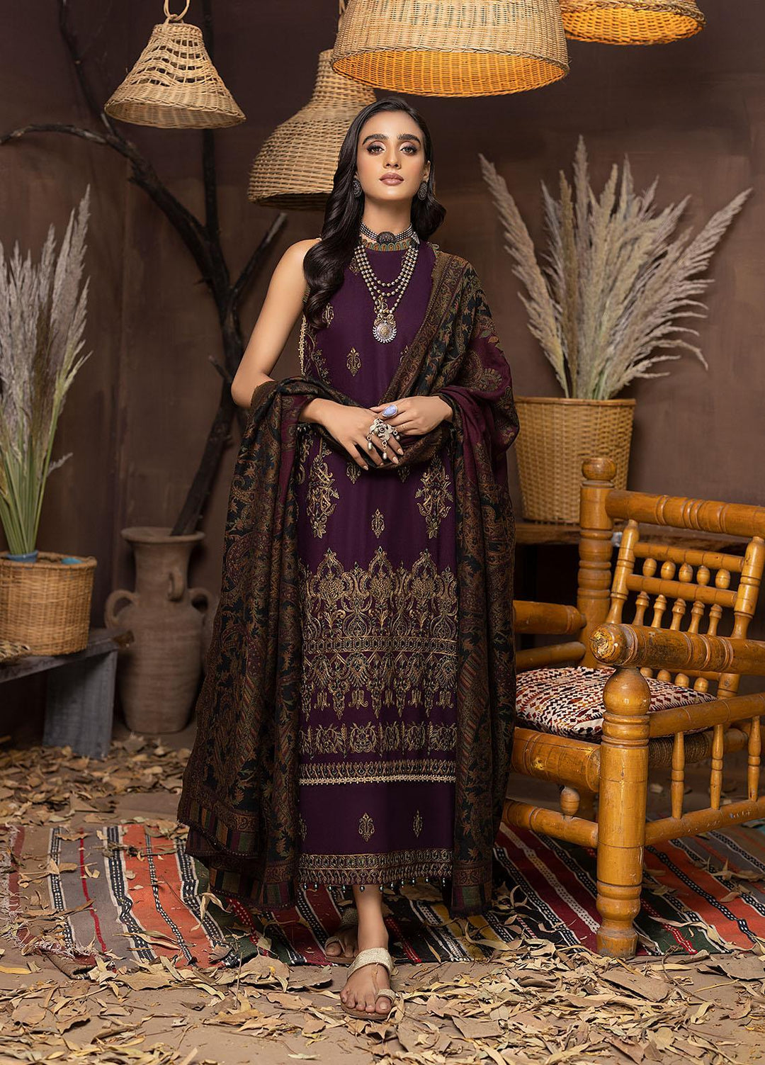 Dastaan By Humdum Embroidered Viscose Suits Unstitched 3 Piece HD22D 02 - Winter Collection