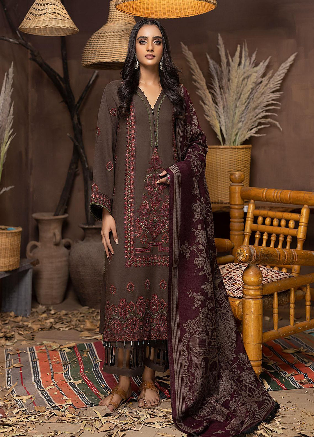 Carvaan By Humdum Embroidered Woolen Suits Unstitched 3 Piece HD22C 07 - Winter Collection