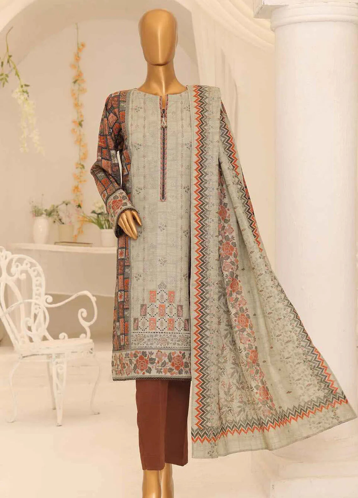 Hz Textiles Embroidered Khaddar Suit Unstitched 3 Piece HZ24K PKE-17 - Winter Collection