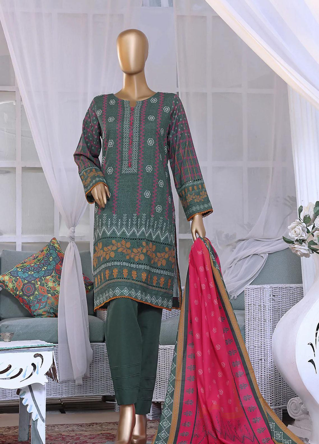 HZ Textiles Printed Khaddar Suits Unstitched 3 Piece HZ223K PKC-2248 - Winter Collection