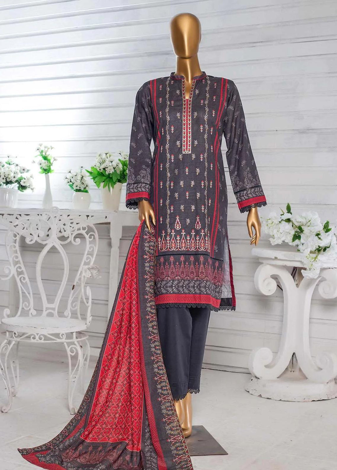 HZ Textiles Embroidered Khaddar Suits Unstitched 3 Piece HZ22PK-V3 PKE-2225 - Winter Collection