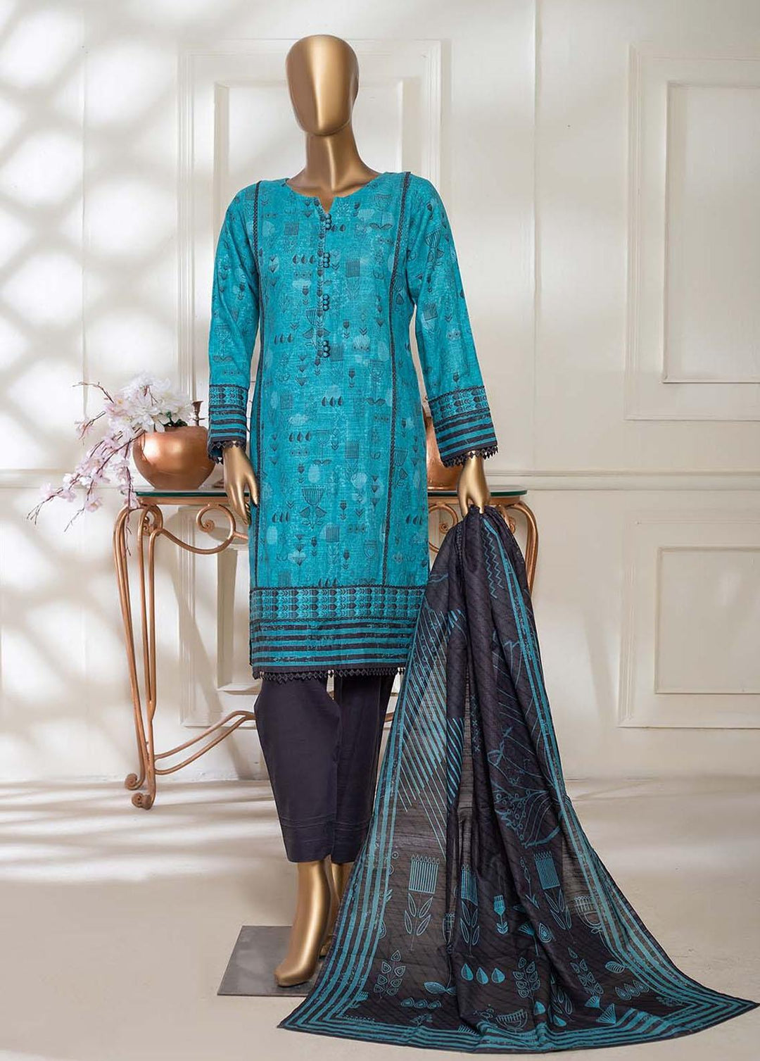 HZ Textiles Printed Khaddar Suits Unstitched 3 Piece HZ22PK-V3 PKC-2243 - Winter Collection