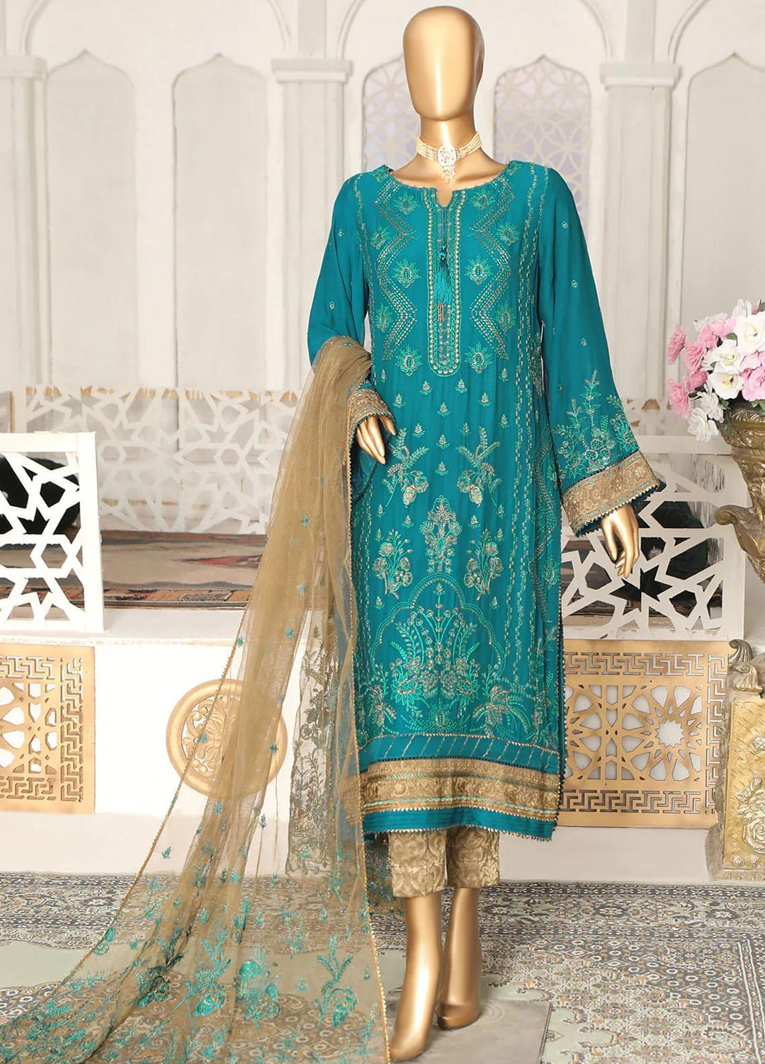 Cortesia By HZ Textiles Embroidered Chiffon Suits Unstitched 3 Piece HZ23C D-08 Oceanic Hues - Luxury Collection