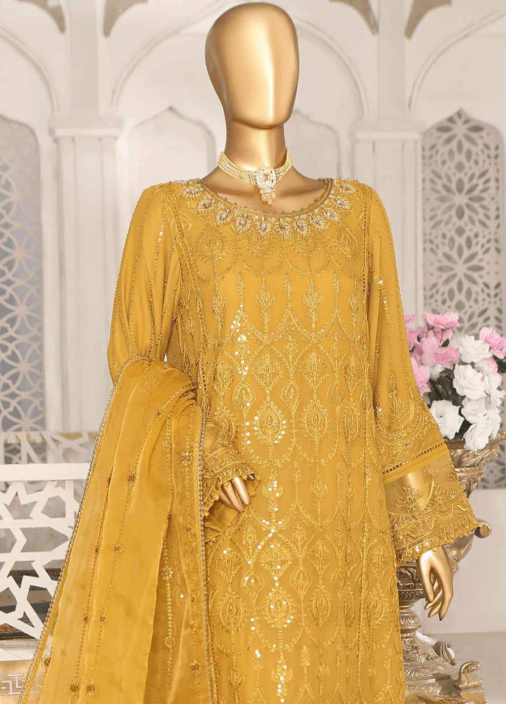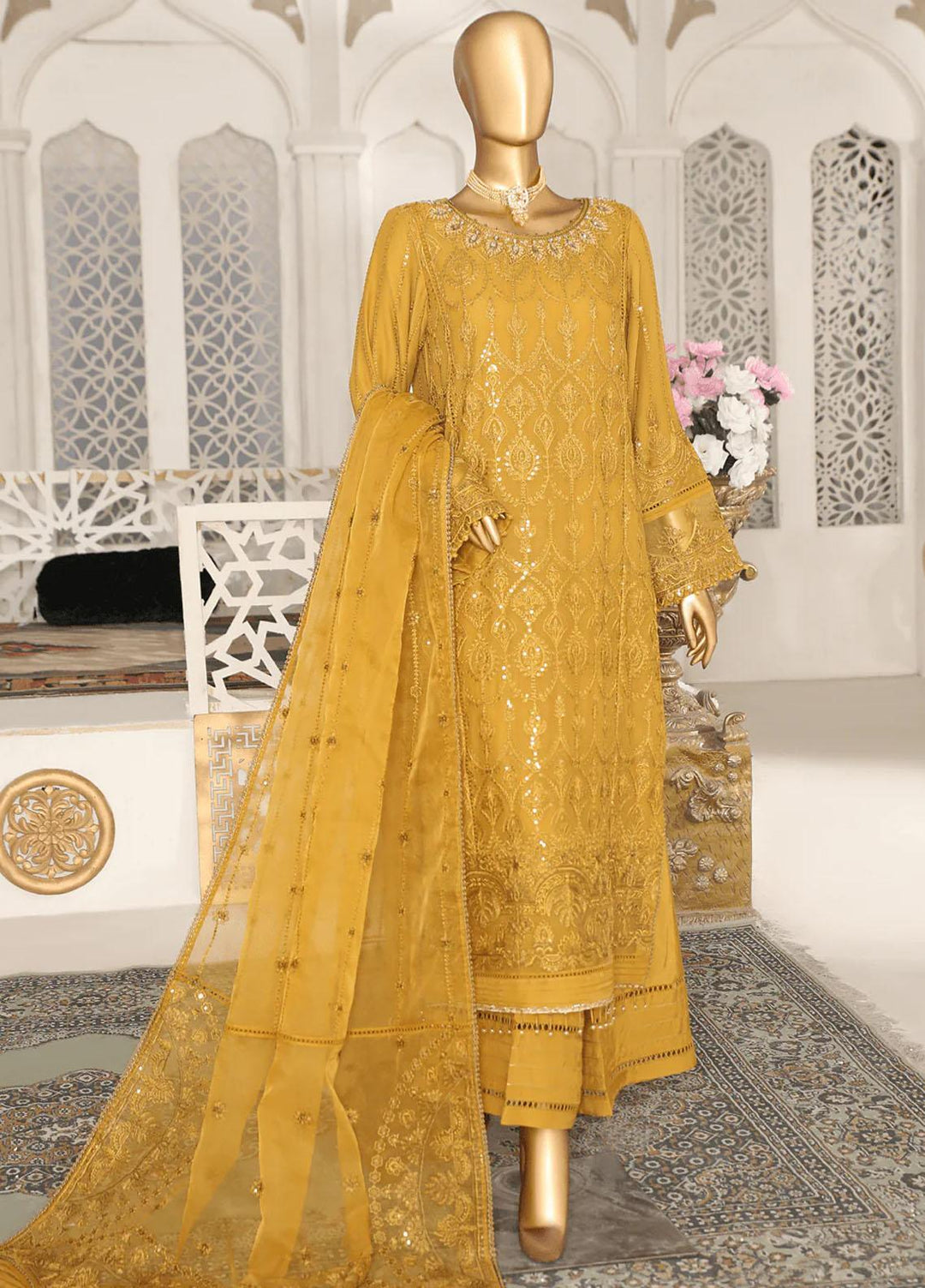 Cortesia By HZ Textiles Embroidered Chiffon Suits Unstitched 3 Piece HZ23C D-06 Golden Glow - Luxury Collection
