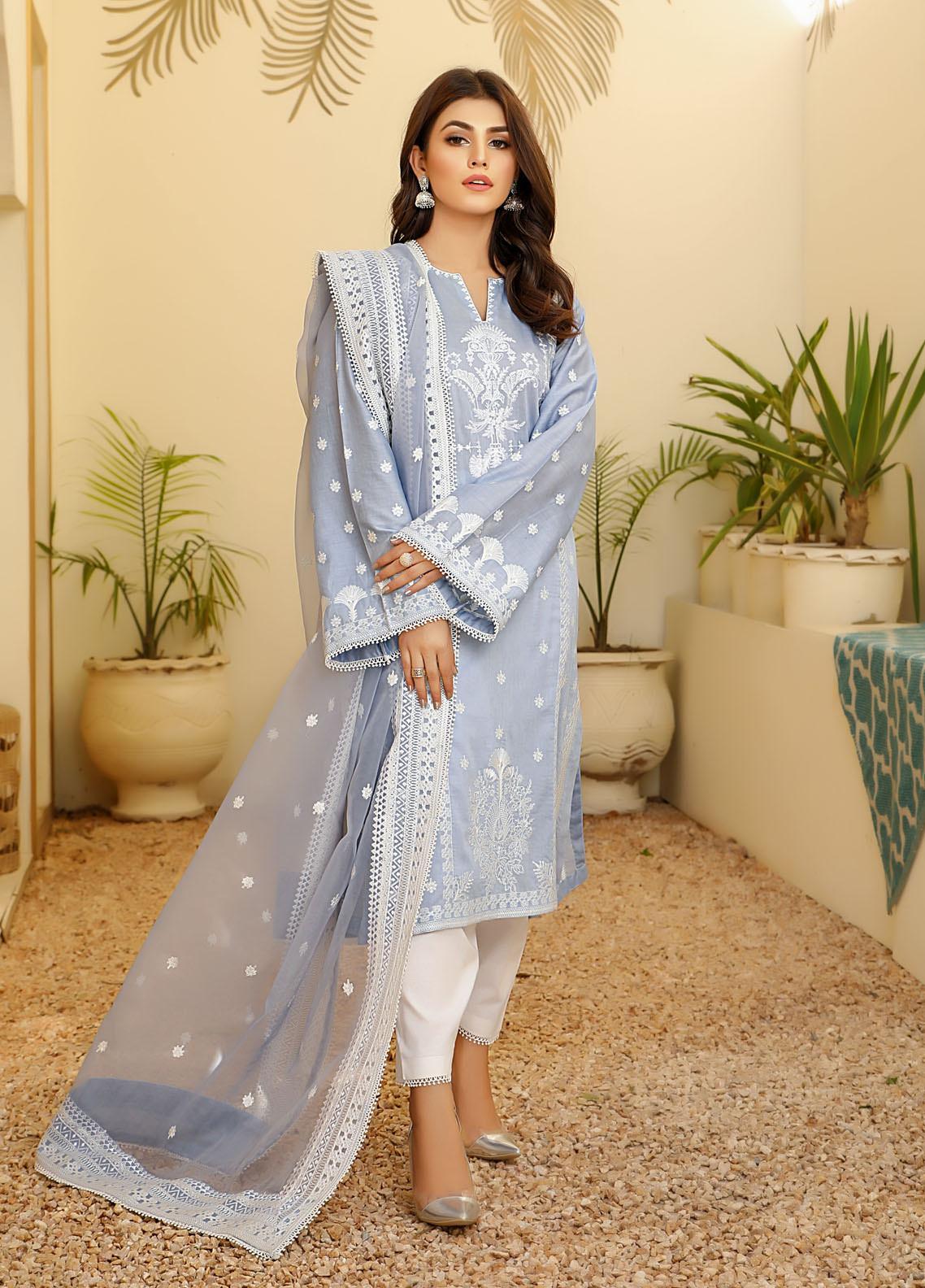Pure Lawn Shirt with a gorgeous blend of white coloured embroidery, paired with a pure organza Dupatta with side border and Lawn Trouser