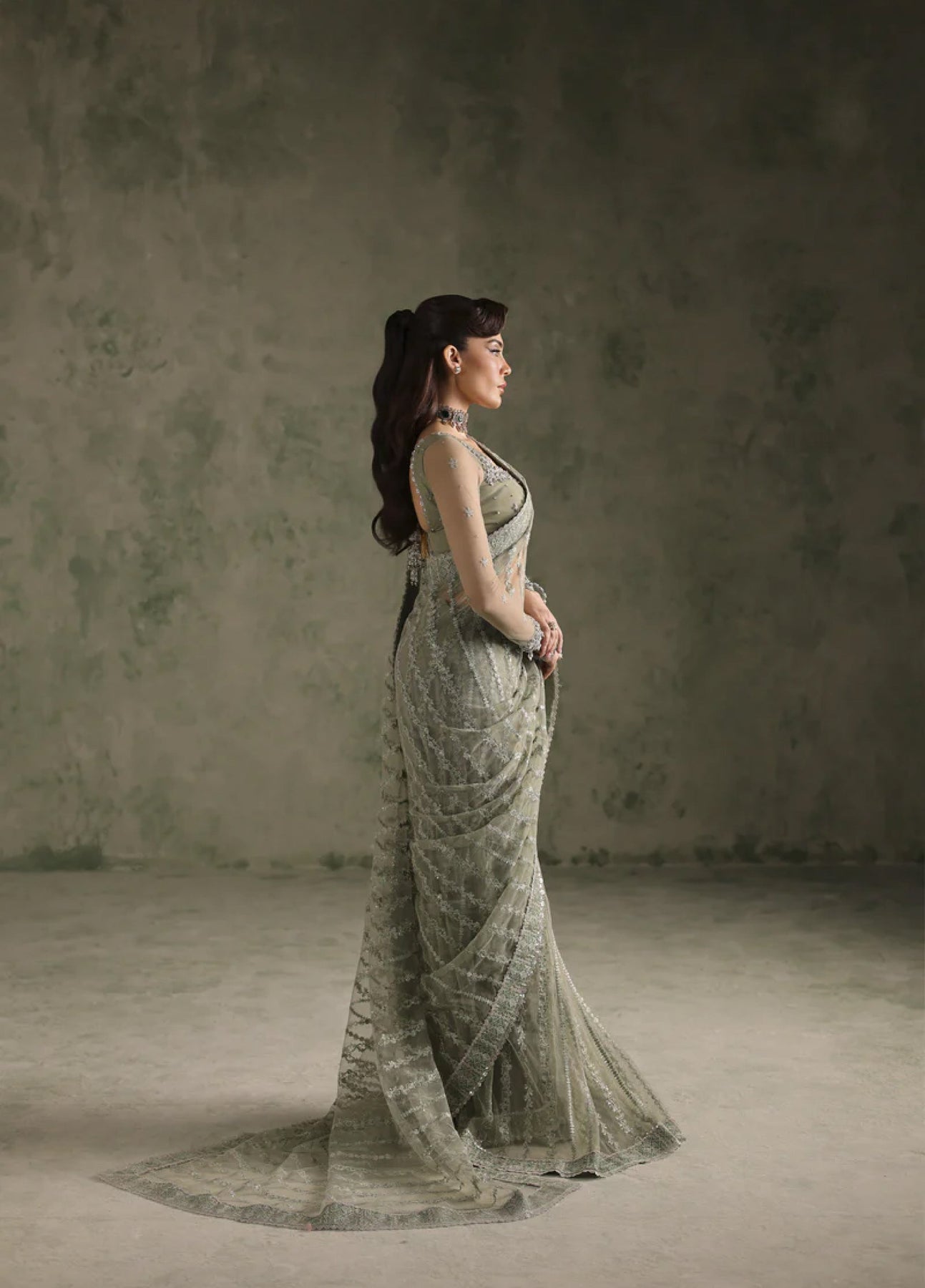 Embroidered Net With Hand Embellishment Sleeves 0.75 Yard