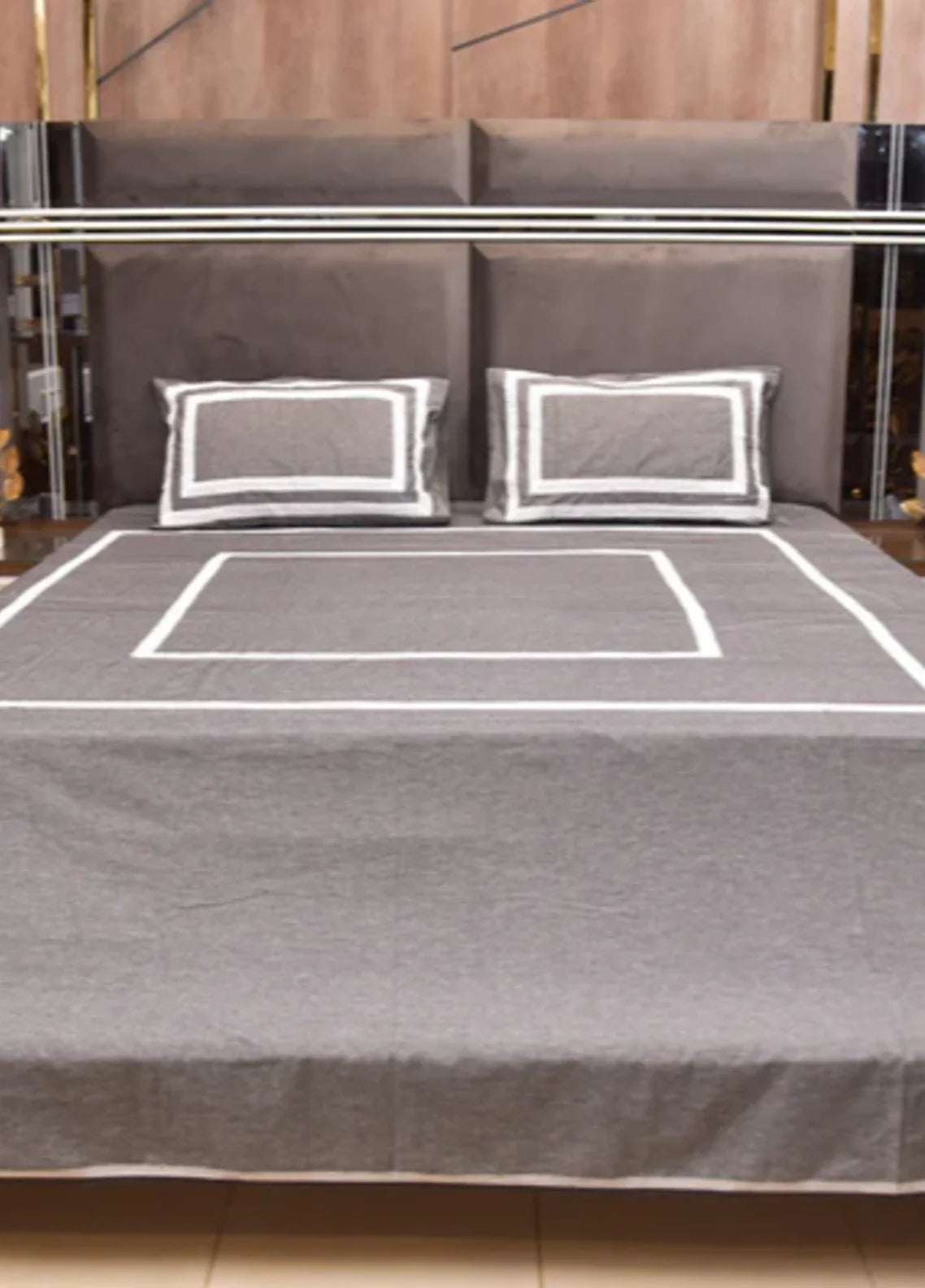 King Size DENIM Style Lace Work Bed Sheet Set with 2 Lace Pillow Covers