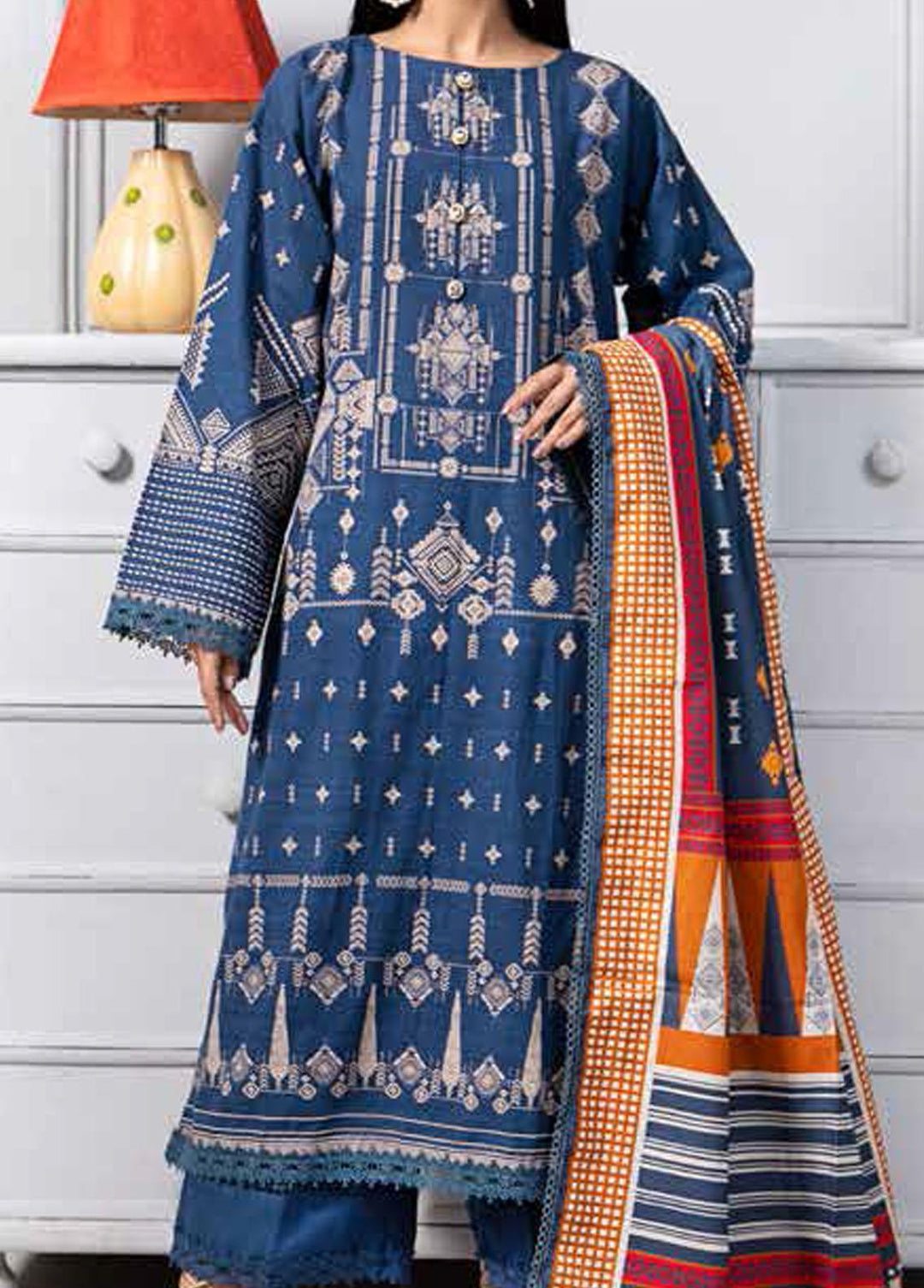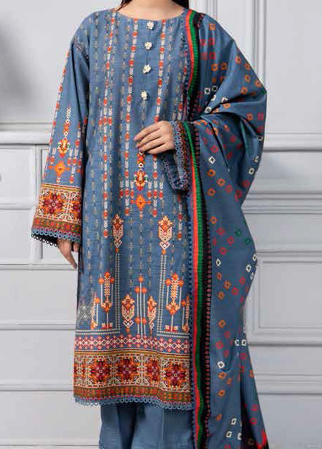 Ittehad Textiles Printed Khaddar Suits Unstitched 3 Piece ITD21K DGK-WHIMSY BLUE - Winter Collection