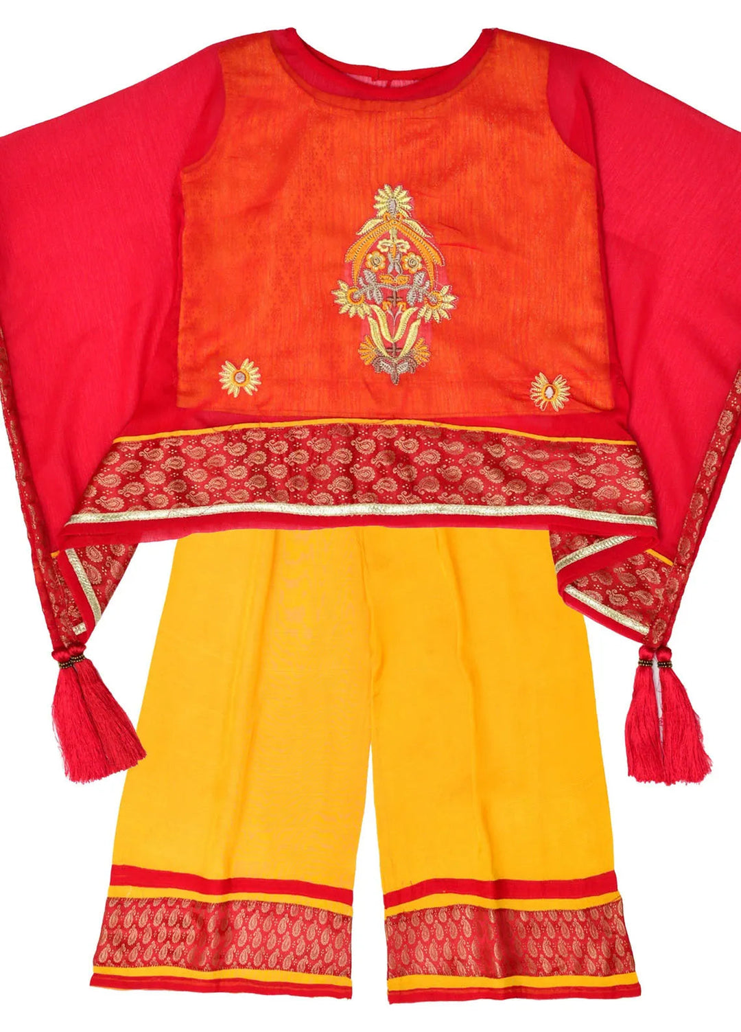 Ixample Pret Embroidered Chiffon Yellow Red 3pc Festive Dress
