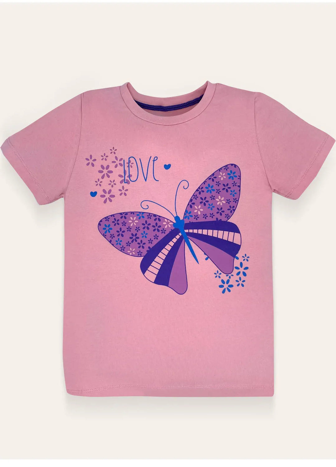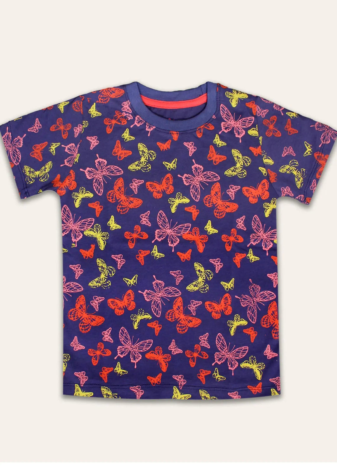 Ixample Pret Printed Cotton Jersey Girls Navy Butterfly Printed Tshirt