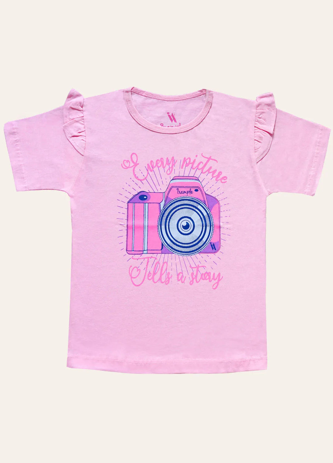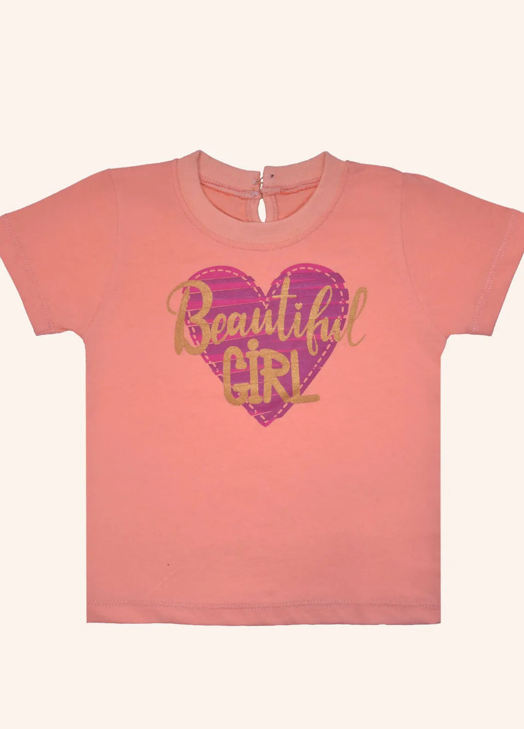 Ixample Pret Printed Cotton Jersey Girls Peach Beautiful Girl Tshirt