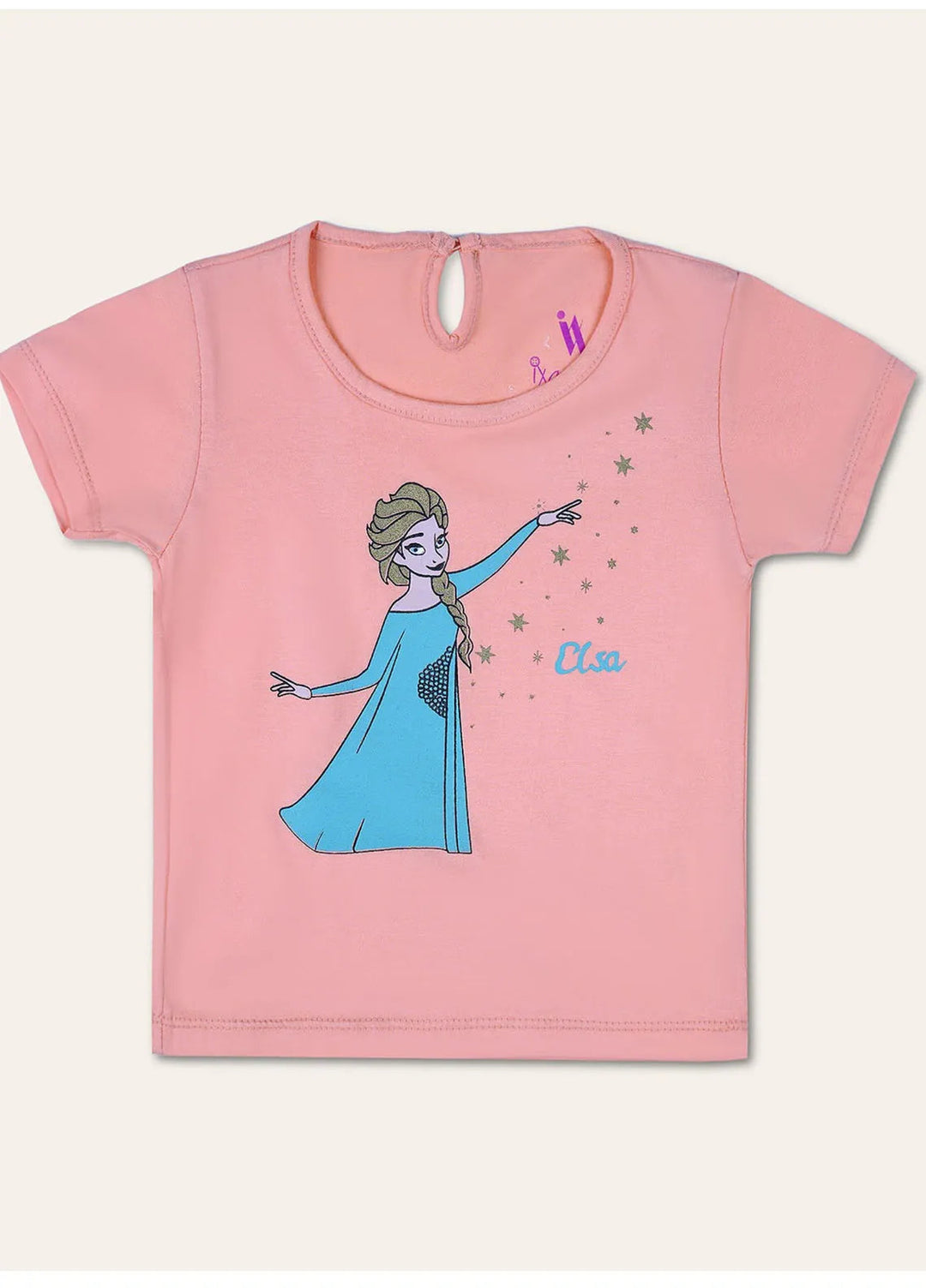 Ixample Pret Printed Cotton Jersey Girls Elsa Character T-Shirt-Peach