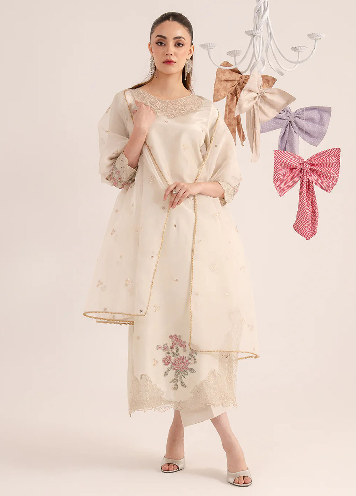 Embroidered organza dupatta