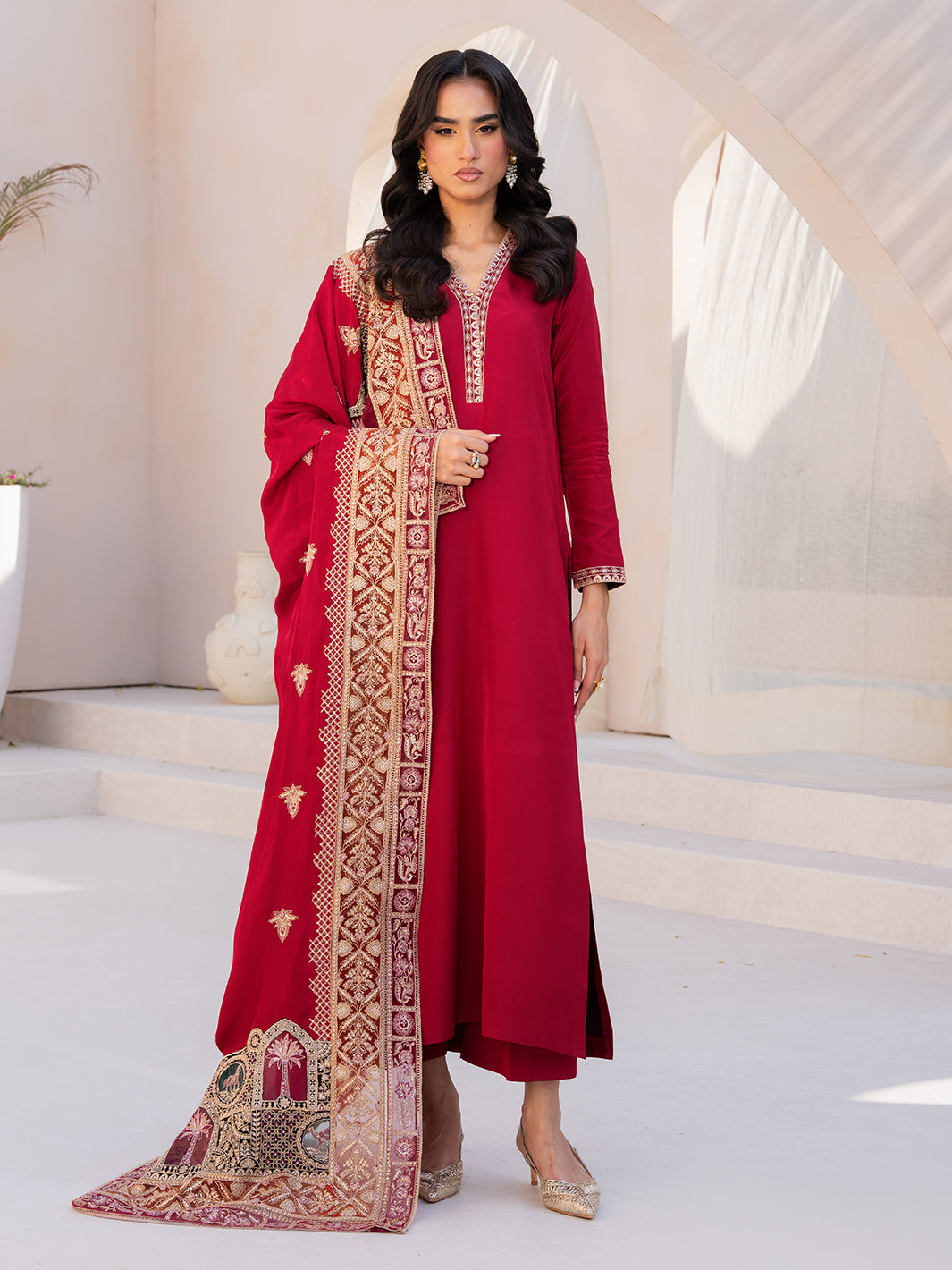 Lumina from the Le Tresor Collection exudes understated elegance this refined ensemble features a plain raw silk suit enhanced with embroidered organza patti on the neckline and sleeves while the embroidered raw silk shawl adds a graceful finishing touch perfect for festive occasions and sophisticated gatherings lumina celebrates subtle luxury and timeless charm