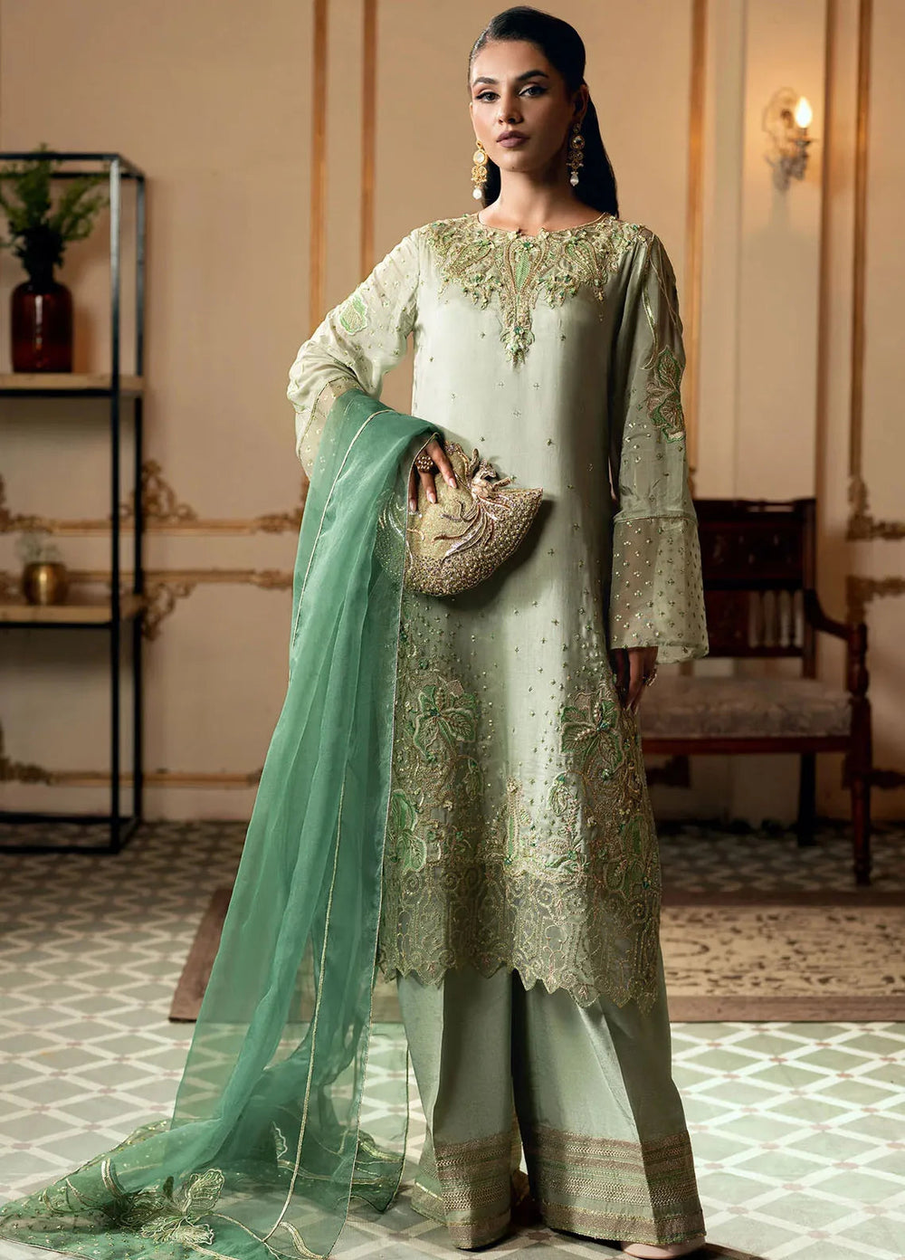 Jamnii Pret Embroidered Russian Silk 2 Piece Suit Jade Elegance