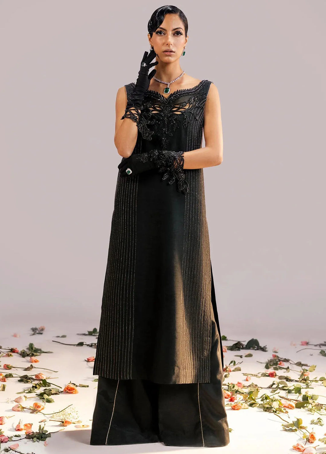 Silk Ivy by Jamnii Pret Embroidered Silk 3 Piece Suit Noir Pearl
