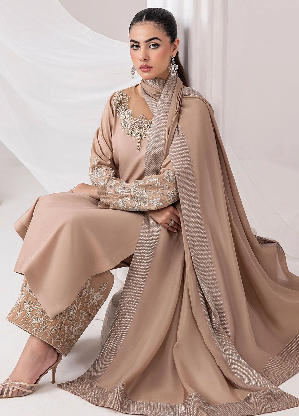 Embroidered Pret Silk 3 Piece Suit