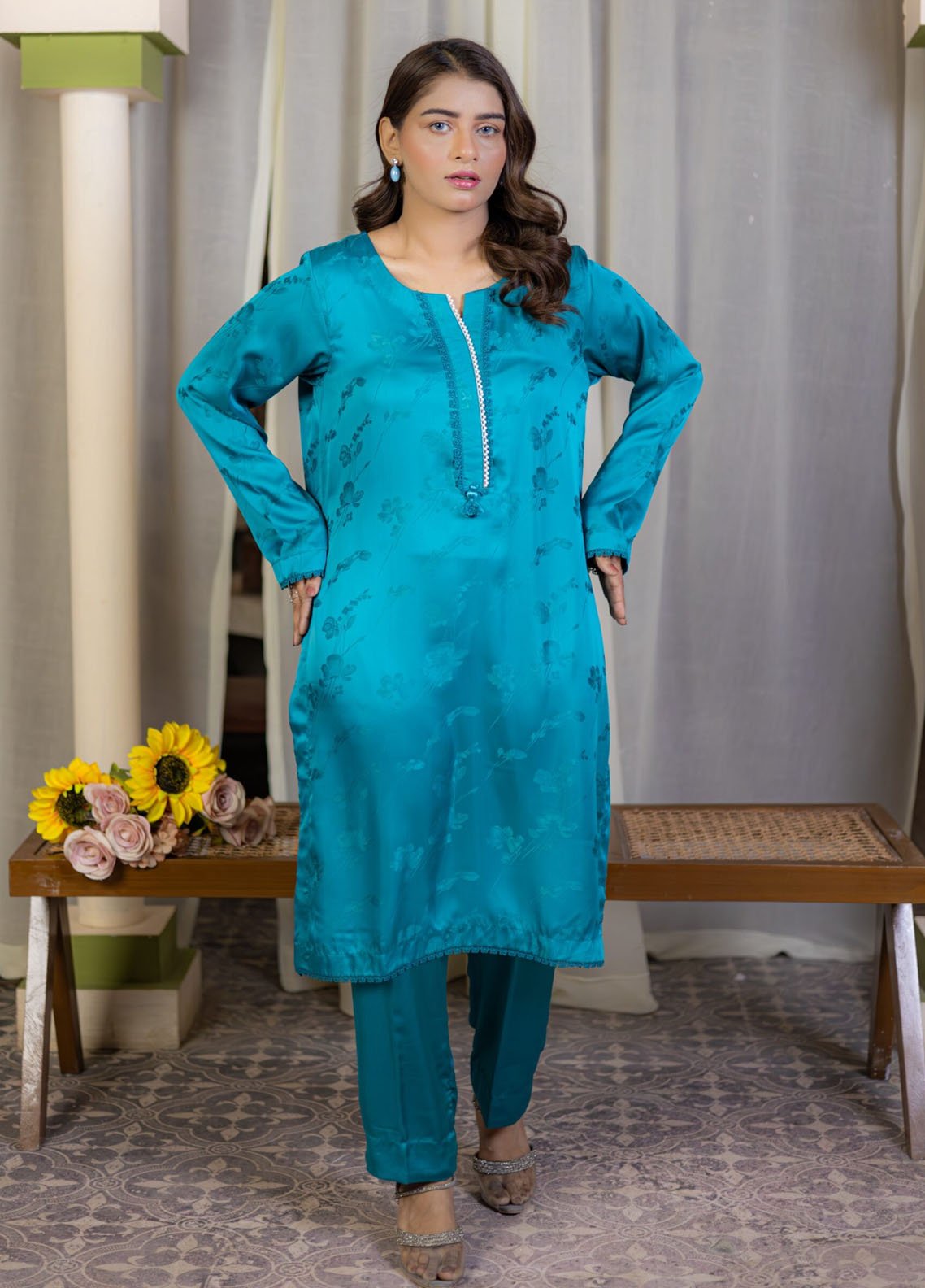 Printed Pret Korean silk 2 Piece Suit