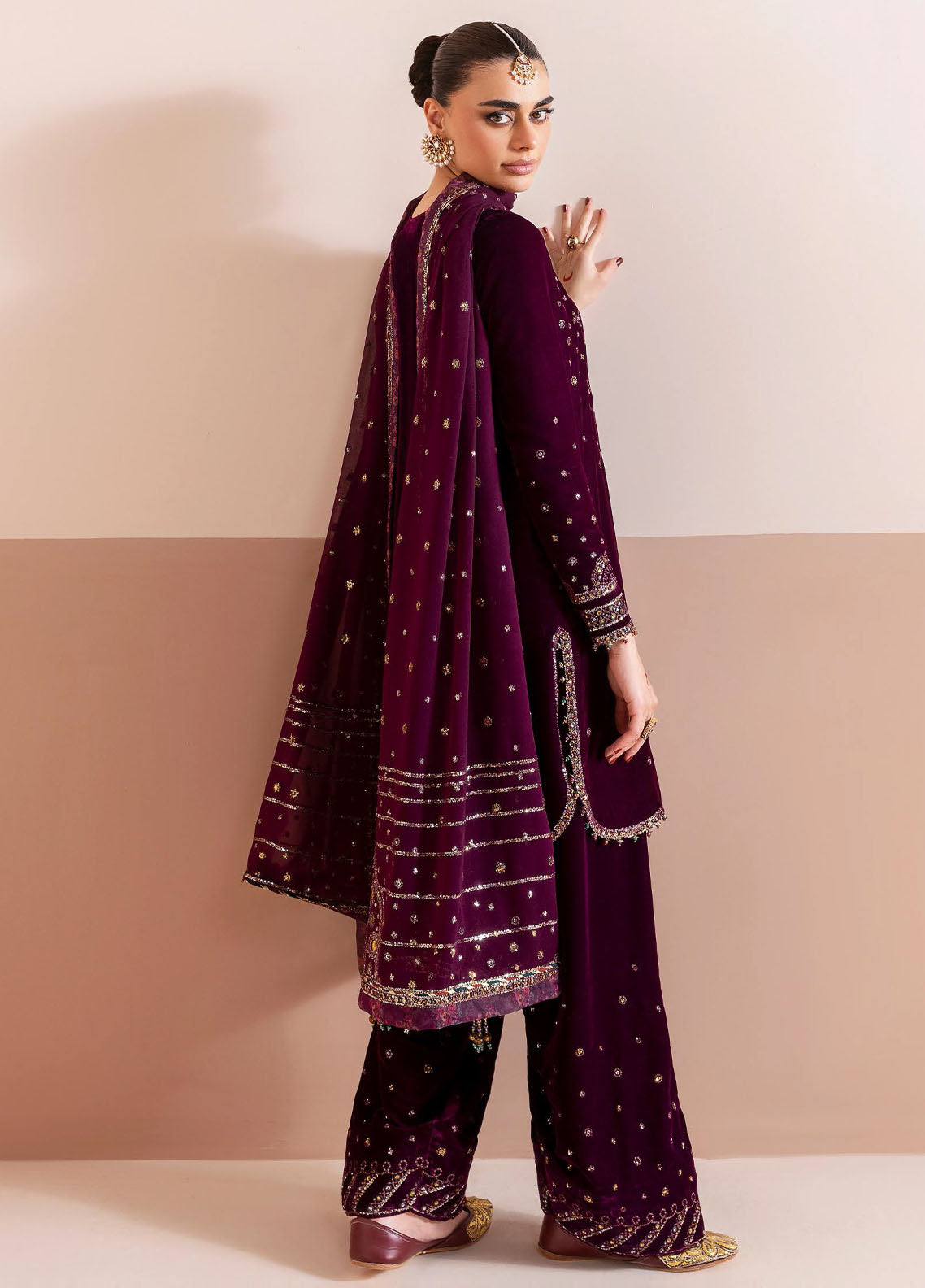Embroidered Pure Velvet Front, Back & Sleeves Borders