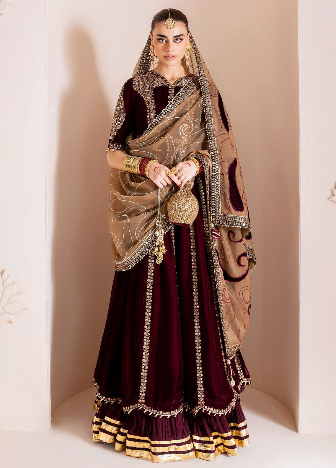 Embroidered Velvet Dupatta Borders