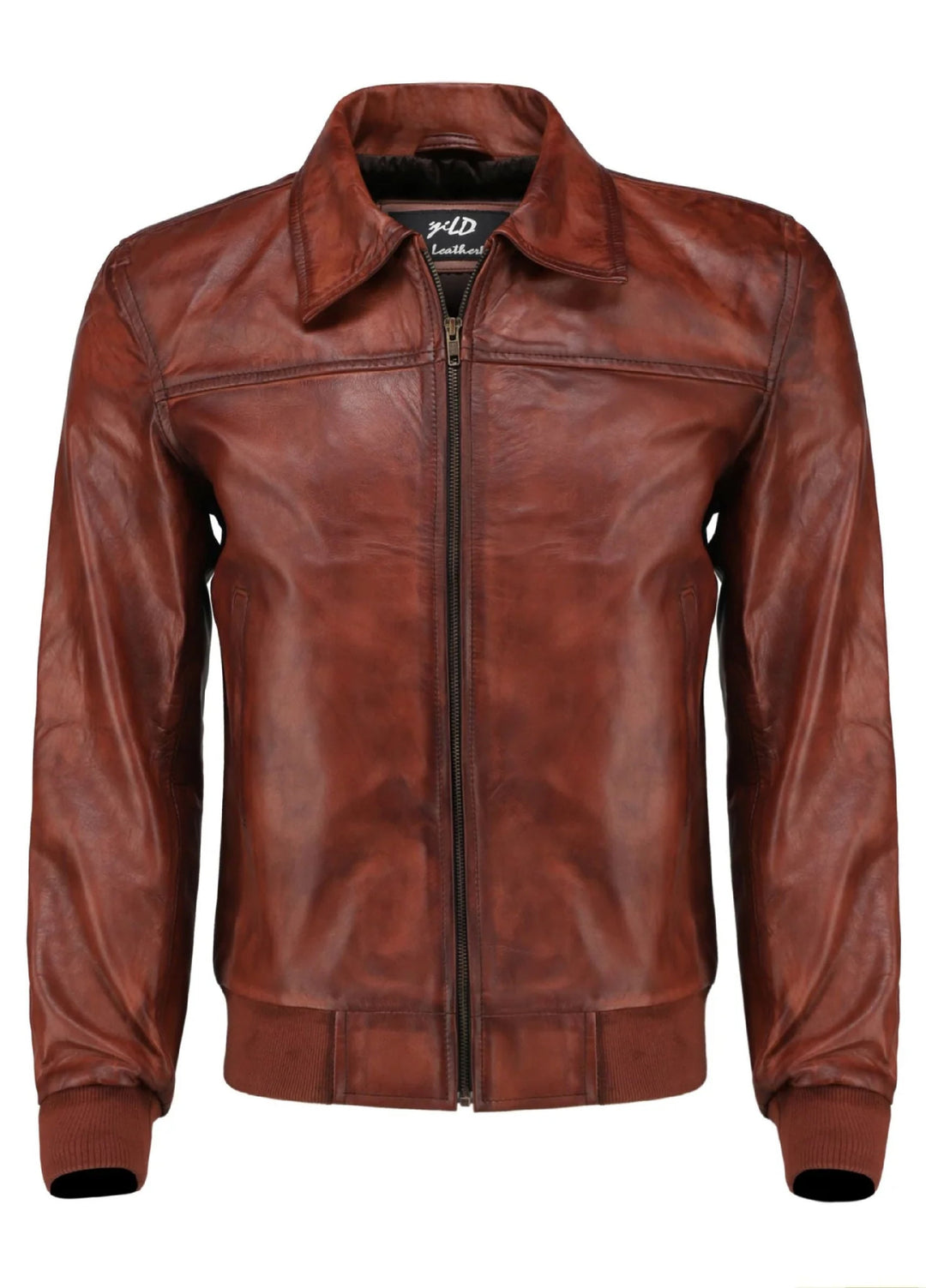 Brown Mens Pure Sheep Leather Zipper Jacket
