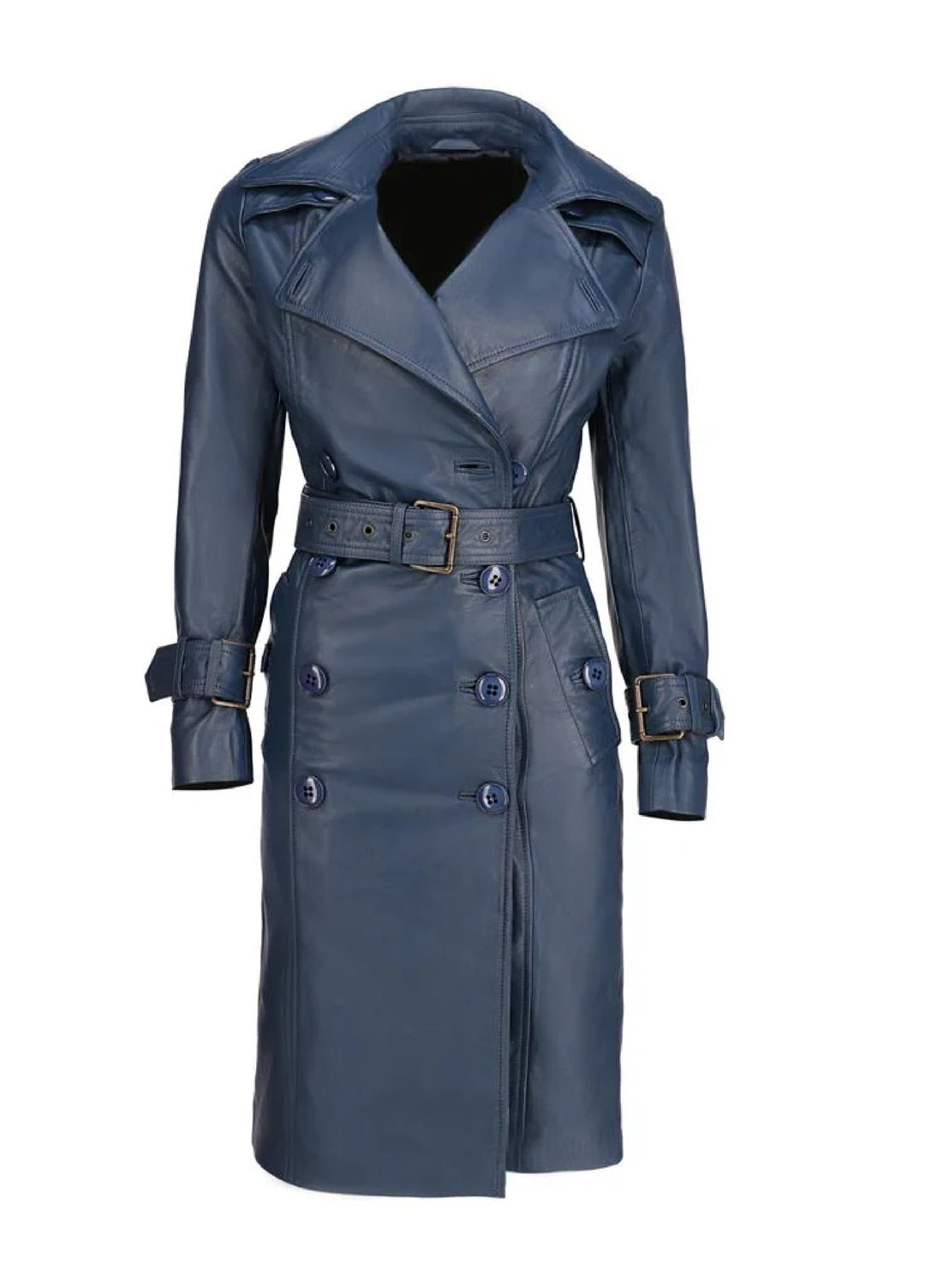 Jild Leathers Classic 2-Button Lambskin Leather Blazer Women-Blue - Blazers And Coats Collection